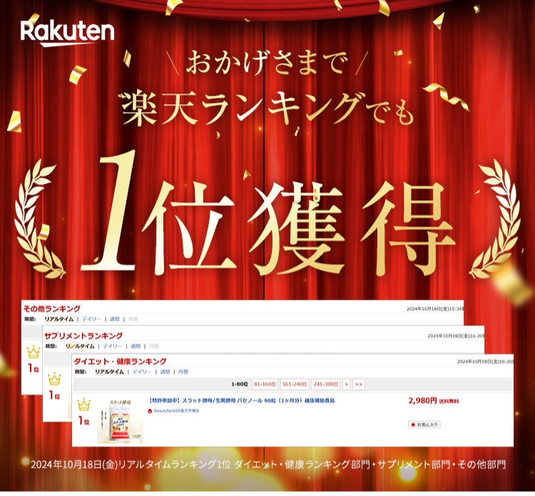 楽天ダイエットサプリ部門で1位を獲得した実績を持ち、テレビ番組『Dセレクション』での特集も話題を集めています。多くの視聴者や購入者から高い評価を受けている安心のサプリメントです。