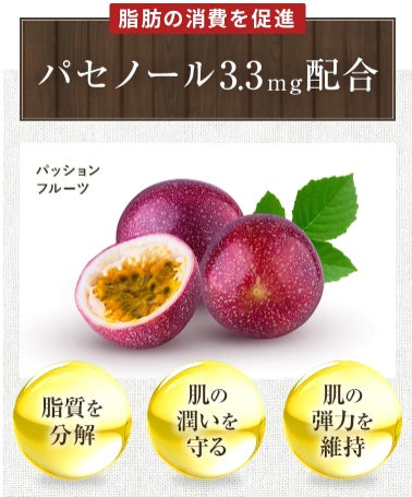パセノールは脂肪分解を促進する成分として注目されています。この成分が体内の脂肪を効率よく分解し、スッキリとした健康的な体作りをサポートします。