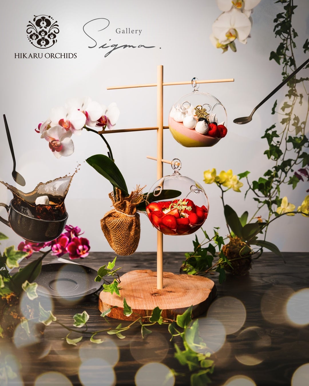 【HIKARU ORCHIDS Cafe × Gallery SIGMA. コラボ 】2024年クリスマスを彩り、2025年に幸せが舞い込んでくる胡蝶蘭アフタヌーンティーセットが登場!