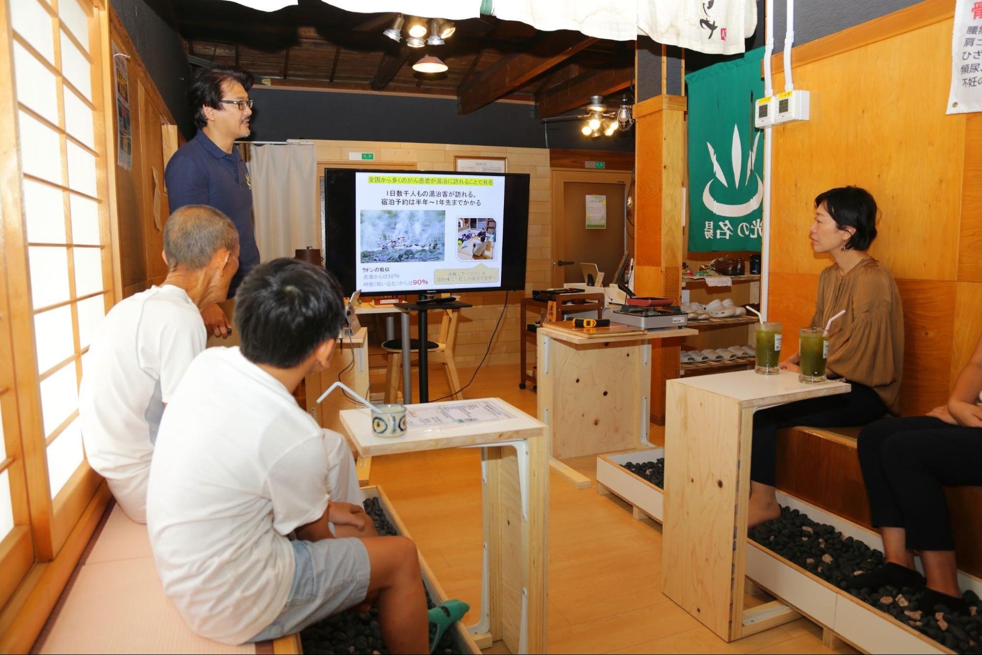 また、定期的に「足石湯体験&ラドン温浴講座」を開催しています。参加者は足石湯とモリンガ茶を楽しみながら、ラドンと育成光線について学べます。