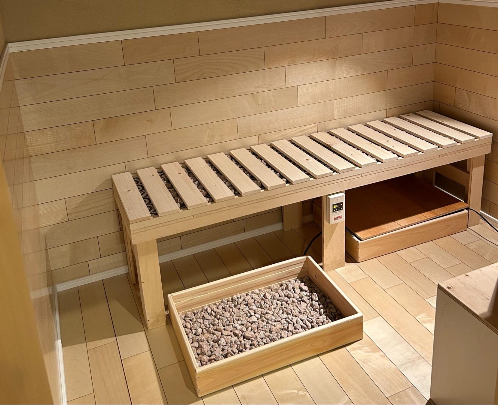 他に遠赤外線シート「おひさまシート」の温浴レベルを最大に上げ、ラジウム鉱石を敷き詰めた「ラジウム温熱ルーム」もあります。