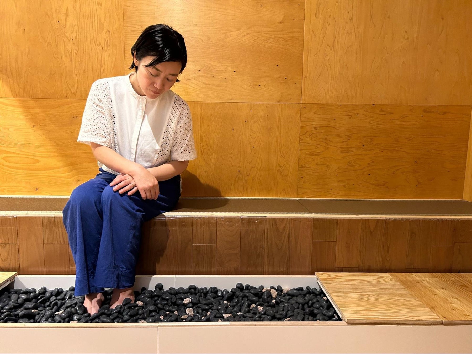 足石湯スペースを設置しました。こちらはお湯の代わりに玉石とラジウム鉱石を敷き詰めた「ラジウム遠赤外線足湯」です。