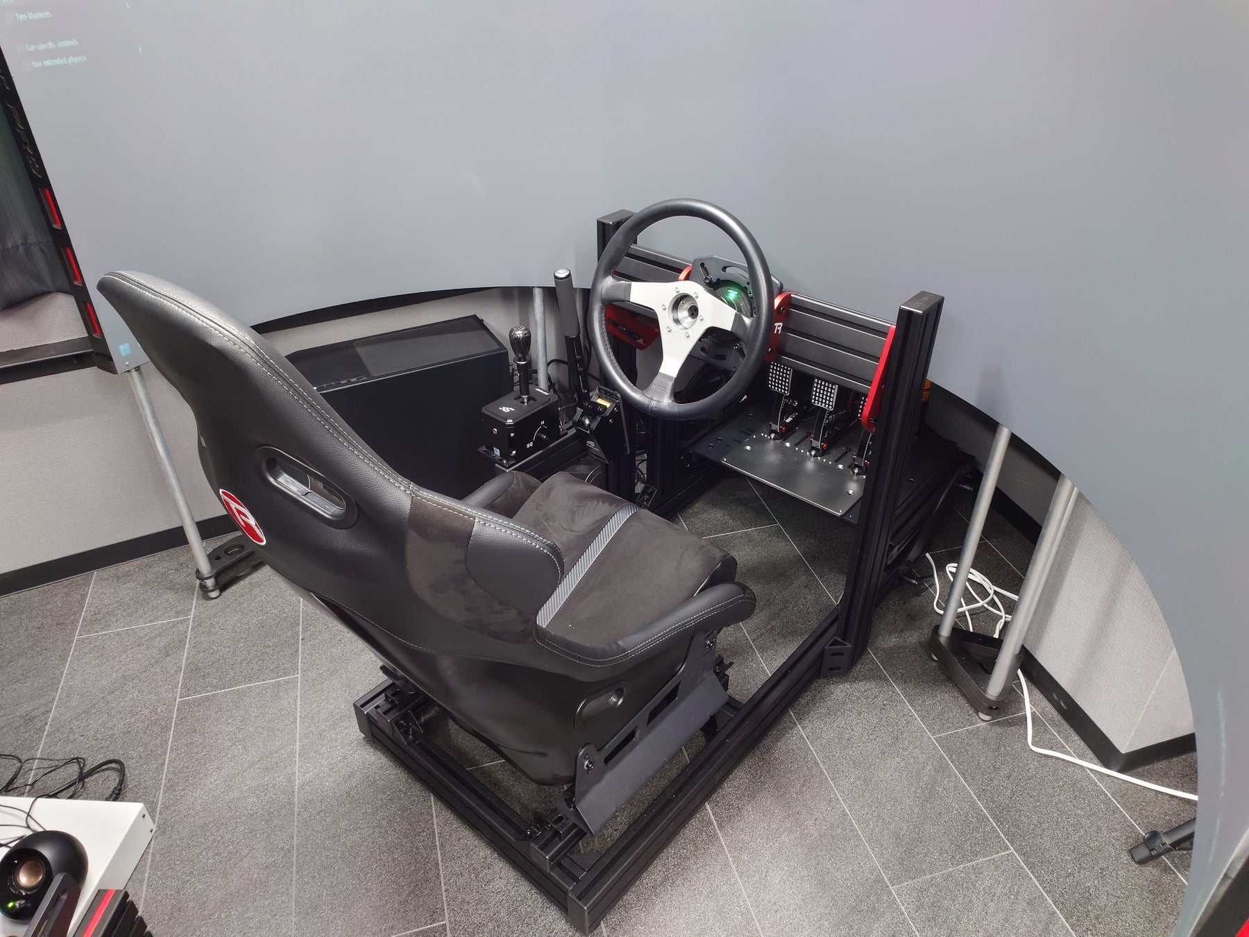 このモーションシステムを搭載した、技術的にも類を見ないレーシングシミュレーターで実車のような走行感と臨場感をぜひお楽しみいただければと思っております。