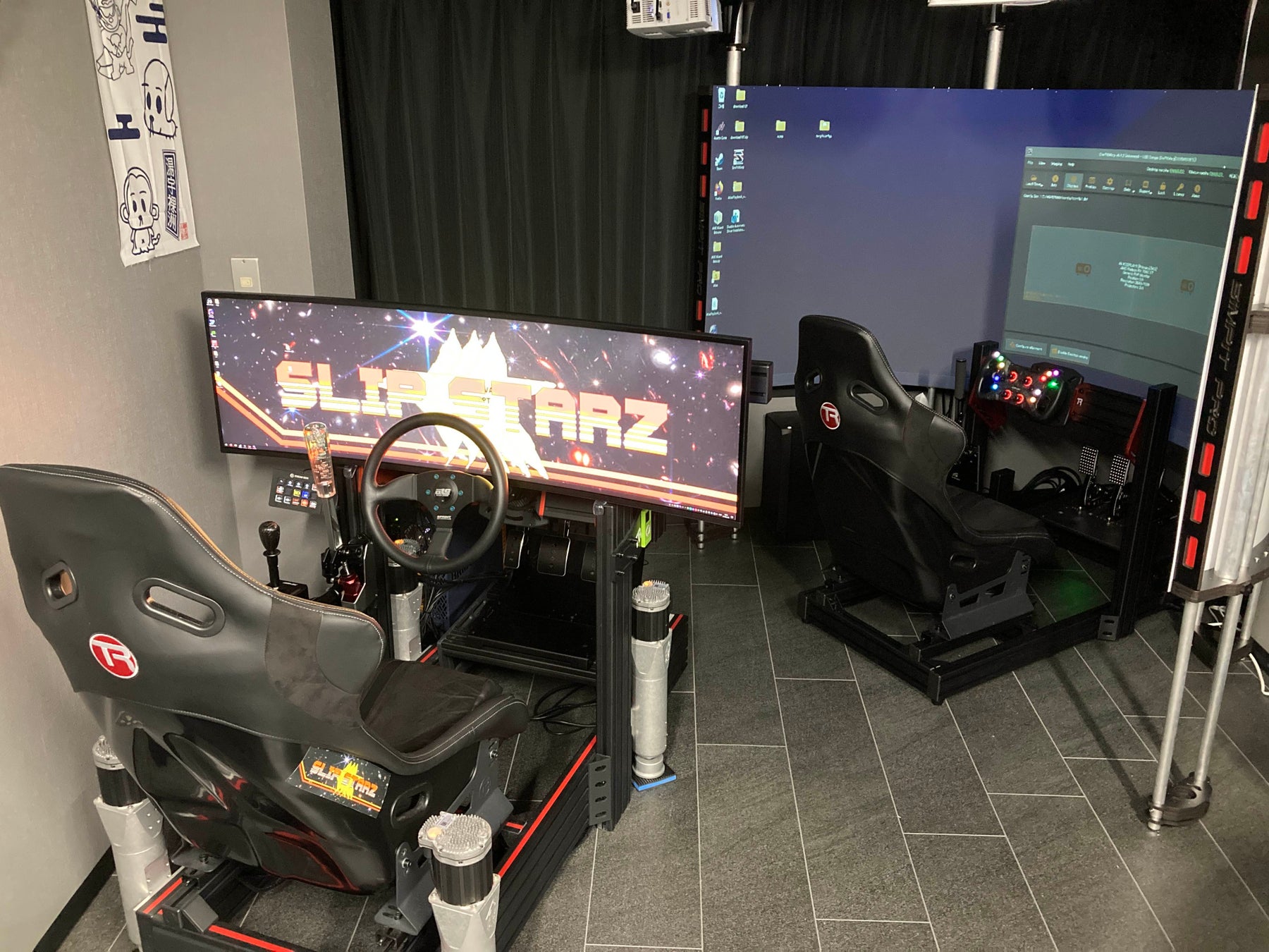 当店では、モータースポーツを存分に楽しめる店内完結型の対戦システムを導入しています。友人同士での対戦はもちろん、プロドライバーとの対戦やドライビングレッスンも可能です。