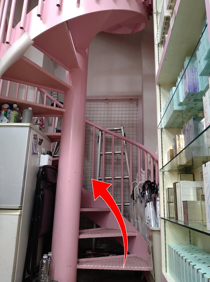 当店は、1階のシルクロード化粧品のレジを通り、螺旋階段を上がった先の3階にございます。アメ横の喧騒を抜けると、まるで隠れ家のような別空間が広がっています。