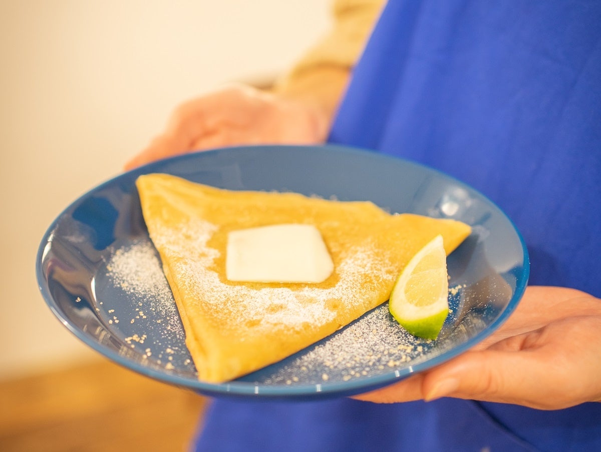 三重県産の小麦粉ときび砂糖、卵、牛乳、バターで作るクレープ生地は、一口食べて驚かれるもちもち食感が自慢です。