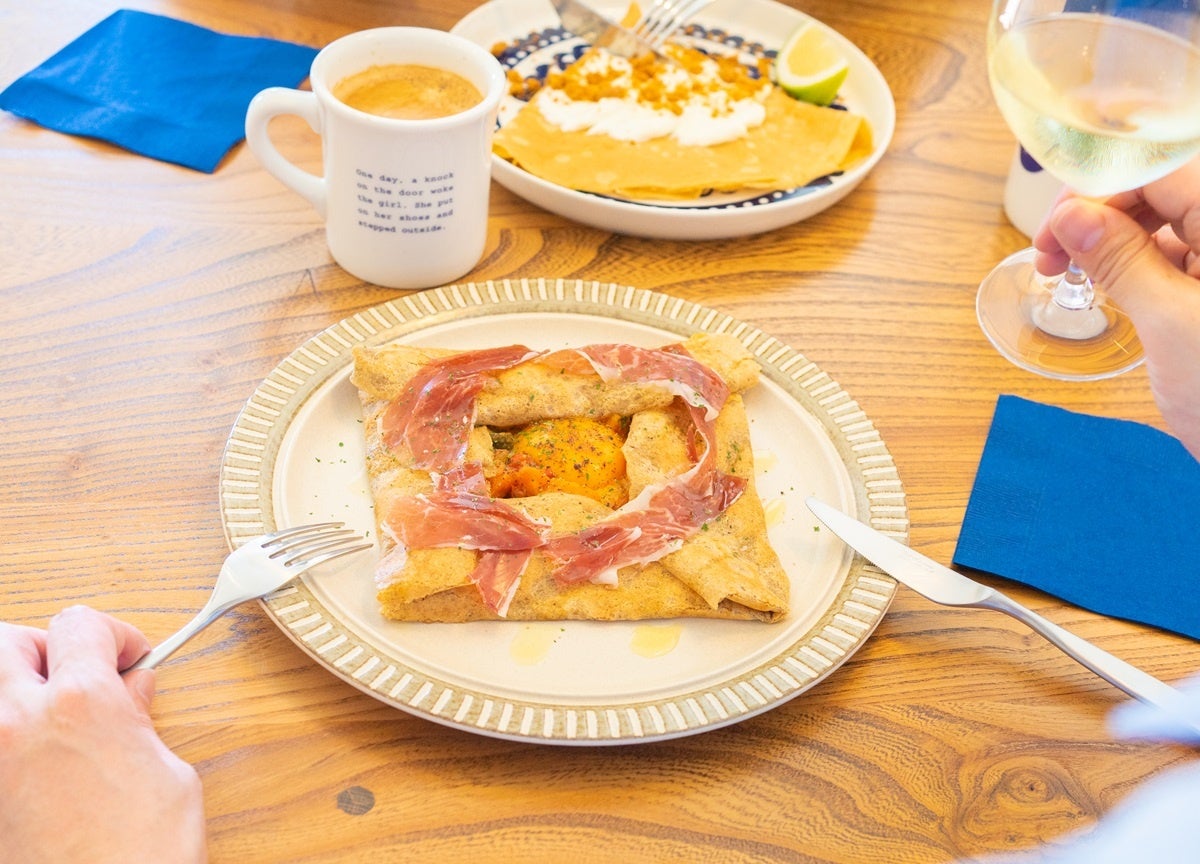 そばアレルギーの店主が、通常のガレットの原材料・そば粉を使わないガレットを提供したい想いから開発した、ライ麦と小麦をブレンドした生地のガレットです。