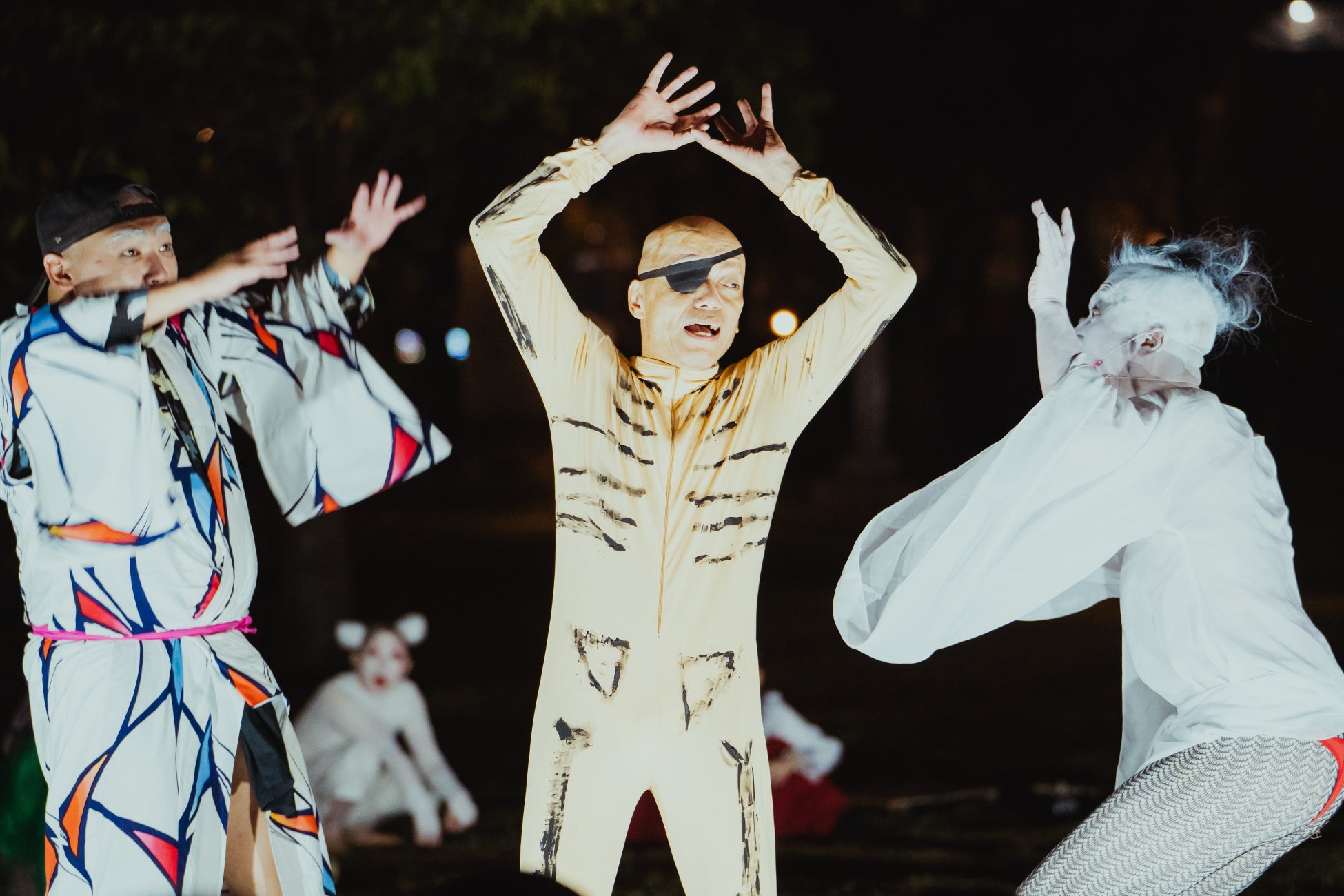 裕:「妖怪図鑑」はダンスや舞踏の精鋭メンバーによる妖怪パフォーマンスです。今までに京都嵐山芸術祭、豊岡演劇祭、すみゆめ、そして今回は台東区からのバックアップといった様々な機会に恵まれ、回を追い、様々な場所で上演する度に内容をアップデートしてきました。