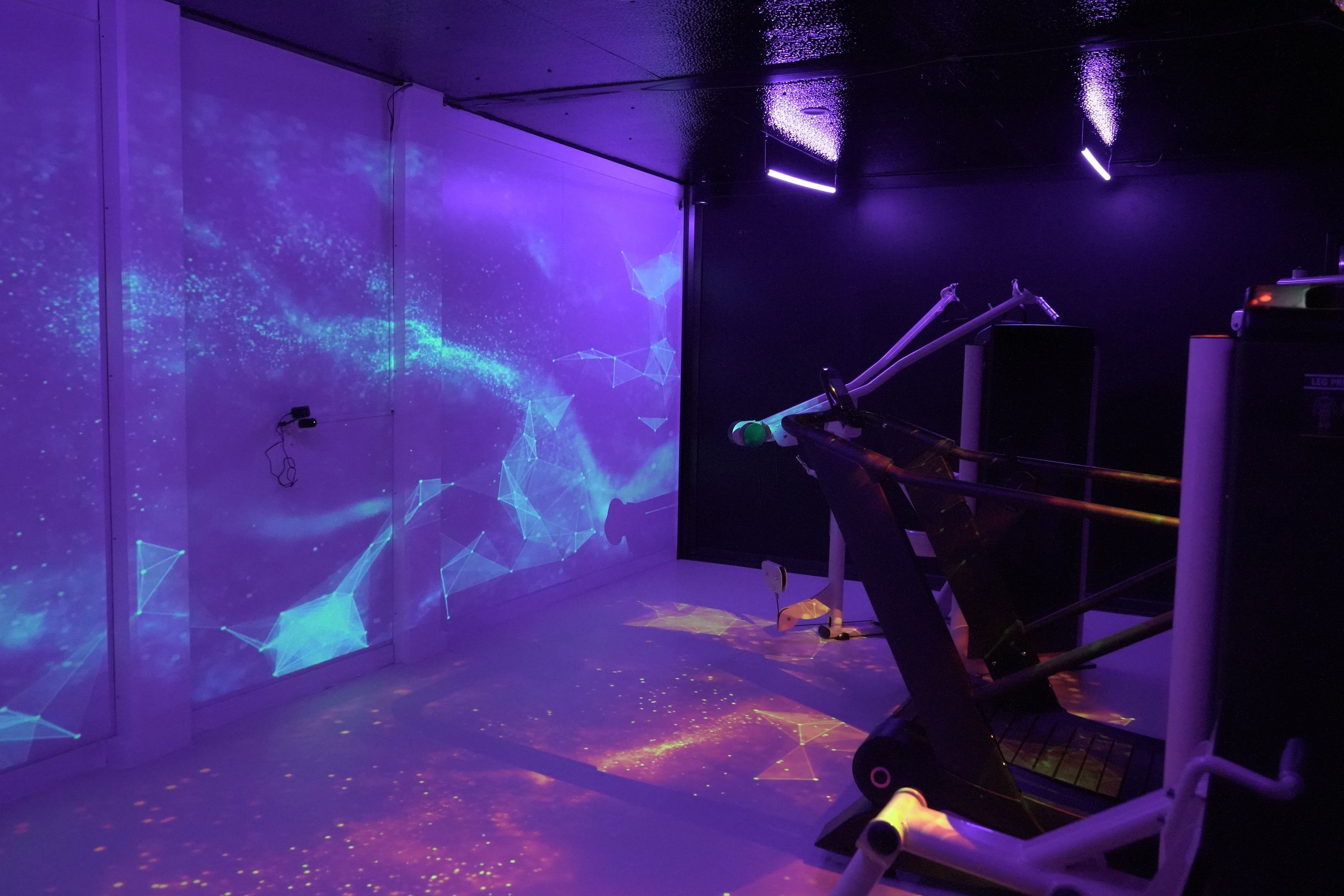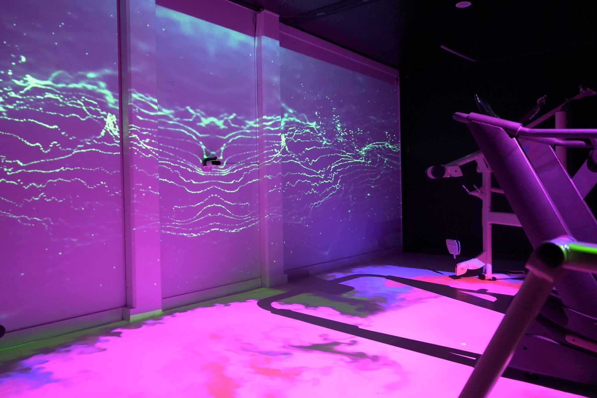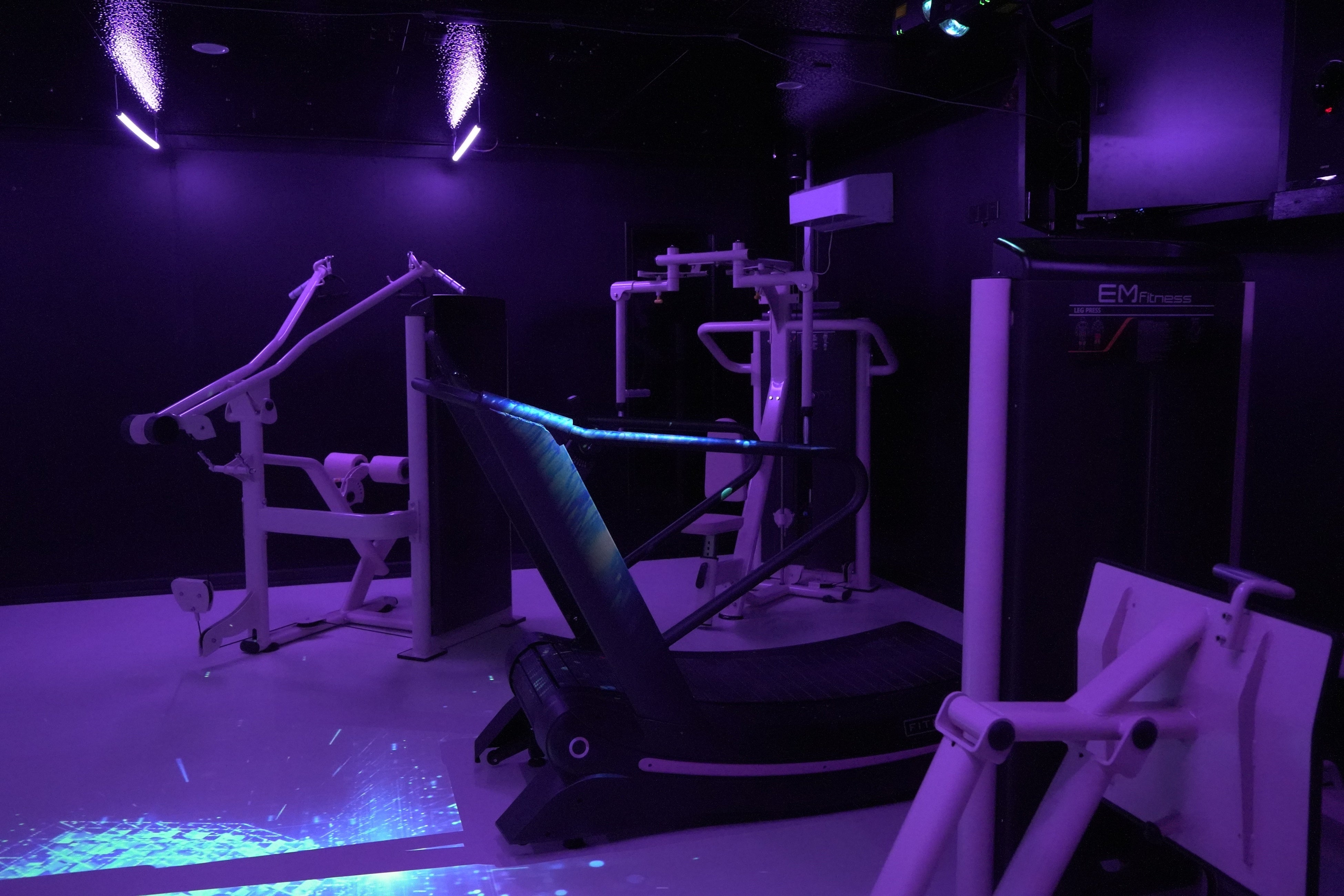ジム内は、幻想的なプロジェクションマッピングを活用し、トレーニングの集中力を高めるデザインが特徴。視覚的な美しさが、運動のモチベーションをさらに引き出します。