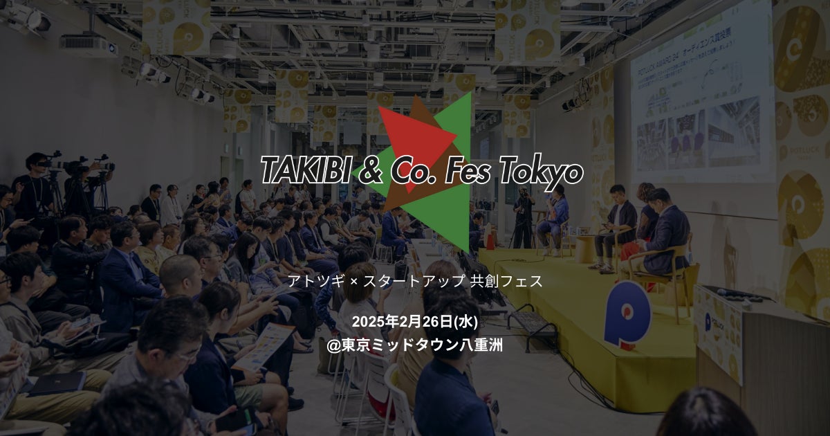 アトツギ×スタートアップの“クロッシング”機会を創出し、このコンセプトを広く全国へ発信することを目的に、「TAKIBI&Co. Fes Tokyo」を開催します。
