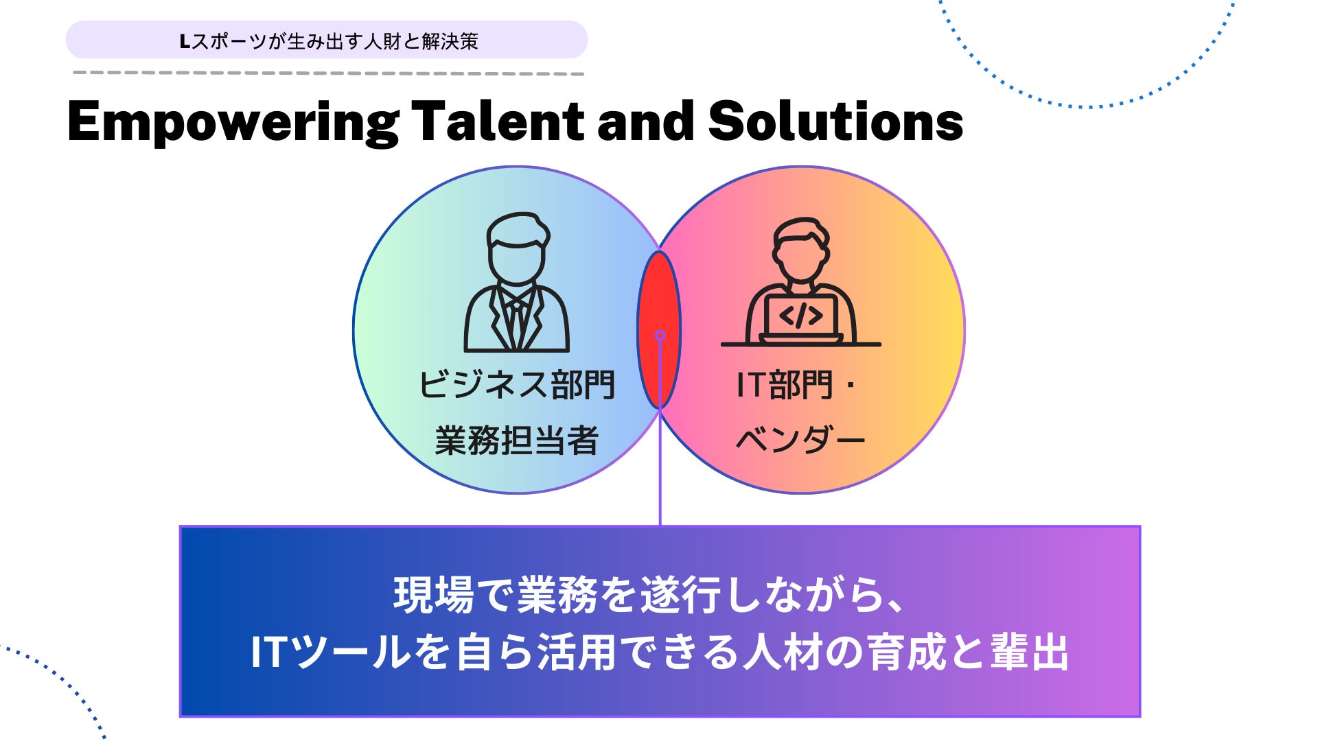 学生や社会人を対象に、Lスポーツを通じた楽しい学びの場を提供し、現代の企業が求めるITスキルを身につける支援を行います。