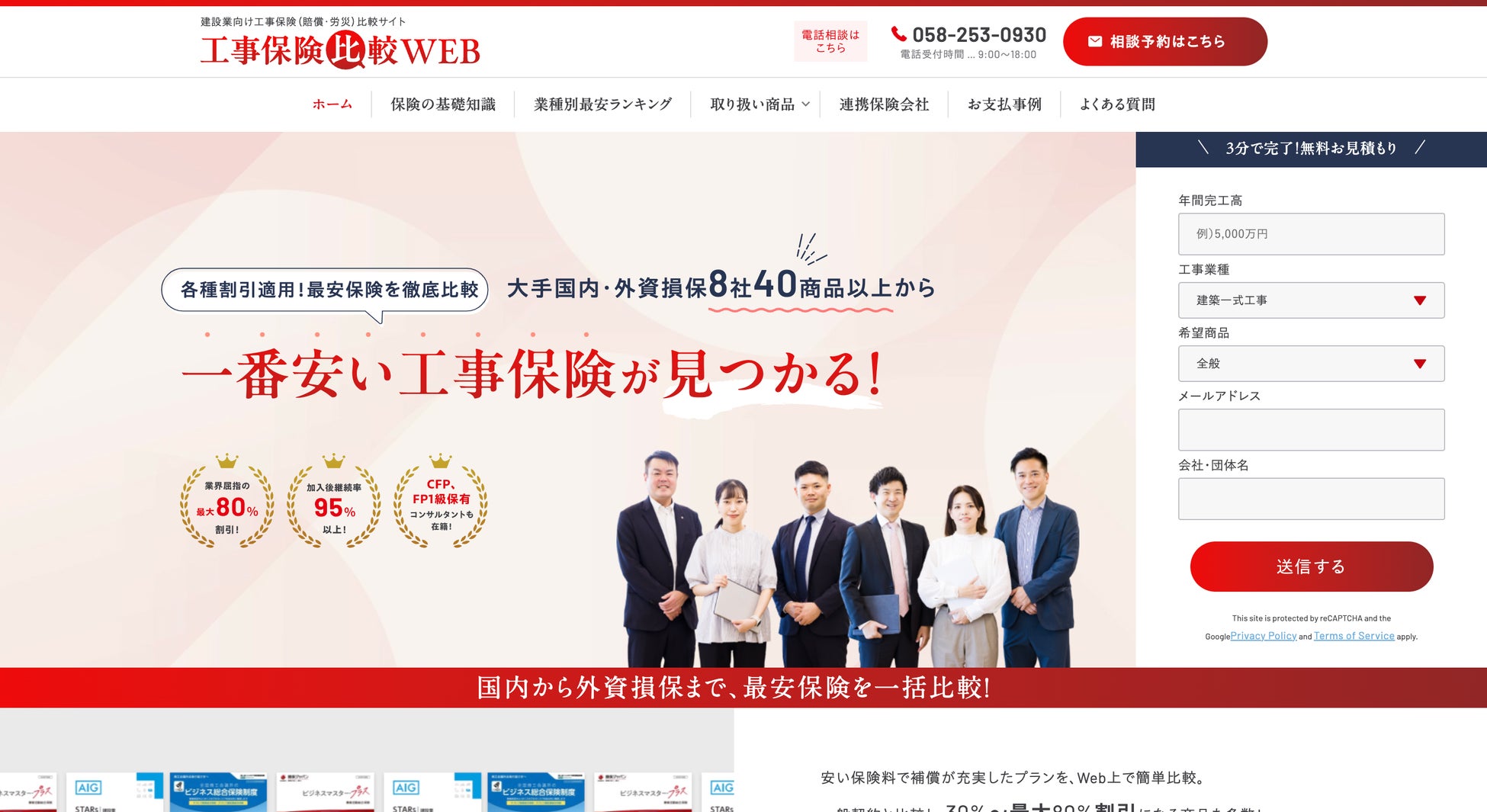 今回のサイト公開と同時に、工事保険に特化したポータルサイト「工事保険WEB」を公開しました。本サイトでは、工事保険の基礎知識や取り扱い保険の種類、具体的なケーススタディーを通じて、建設企業様の保険選びをサポートします。対象は全国の建設企業様で、特に東海エリア(岐阜・愛知・三重・静岡)では対面でのご相談も可能です。デジタルマーケティングを強化し、工事保険の加入や見直しを検討される企業様に確実な情報提供を行い、経営の安心と効率化に貢献してまいります。
