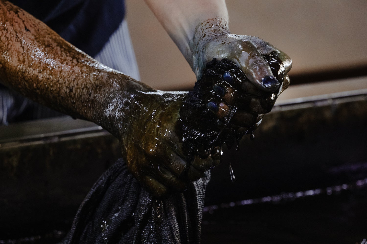 藍染めに使う染色液を「発酵」させてつくる工程は、「藍建て(あいだて)」と呼ばれます。世界にはさまざまな材料や手法による藍建てが存在しますが、日本特有の「蒅(すくも)」を用いた藍建ては、日本の発酵文化や染色文化を象徴する技法として、国内外から高い注目を集めています。