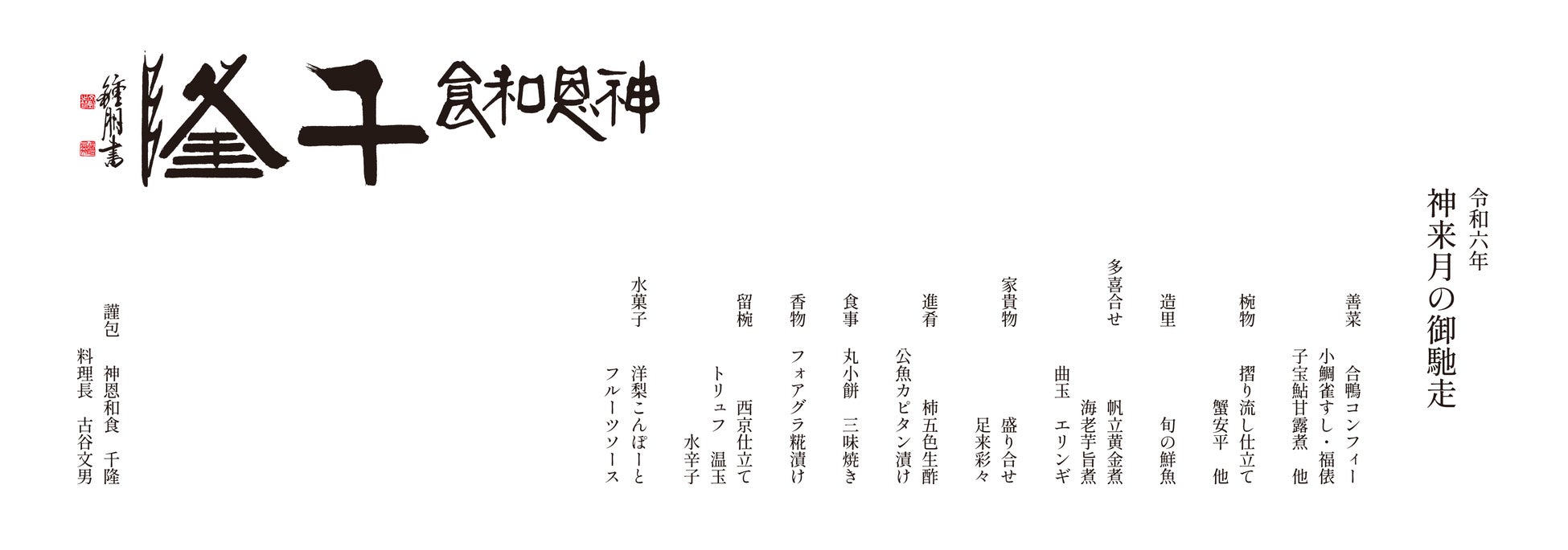 和食や居酒屋などを戦前に始め、大阪の100年を共に過ごしてきた株式会社千隆は、三代目の木林義典で日本の伝統文化と世界の食文化とつなげる場として、神恩和食千隆を2024年12月19日にオープンした。