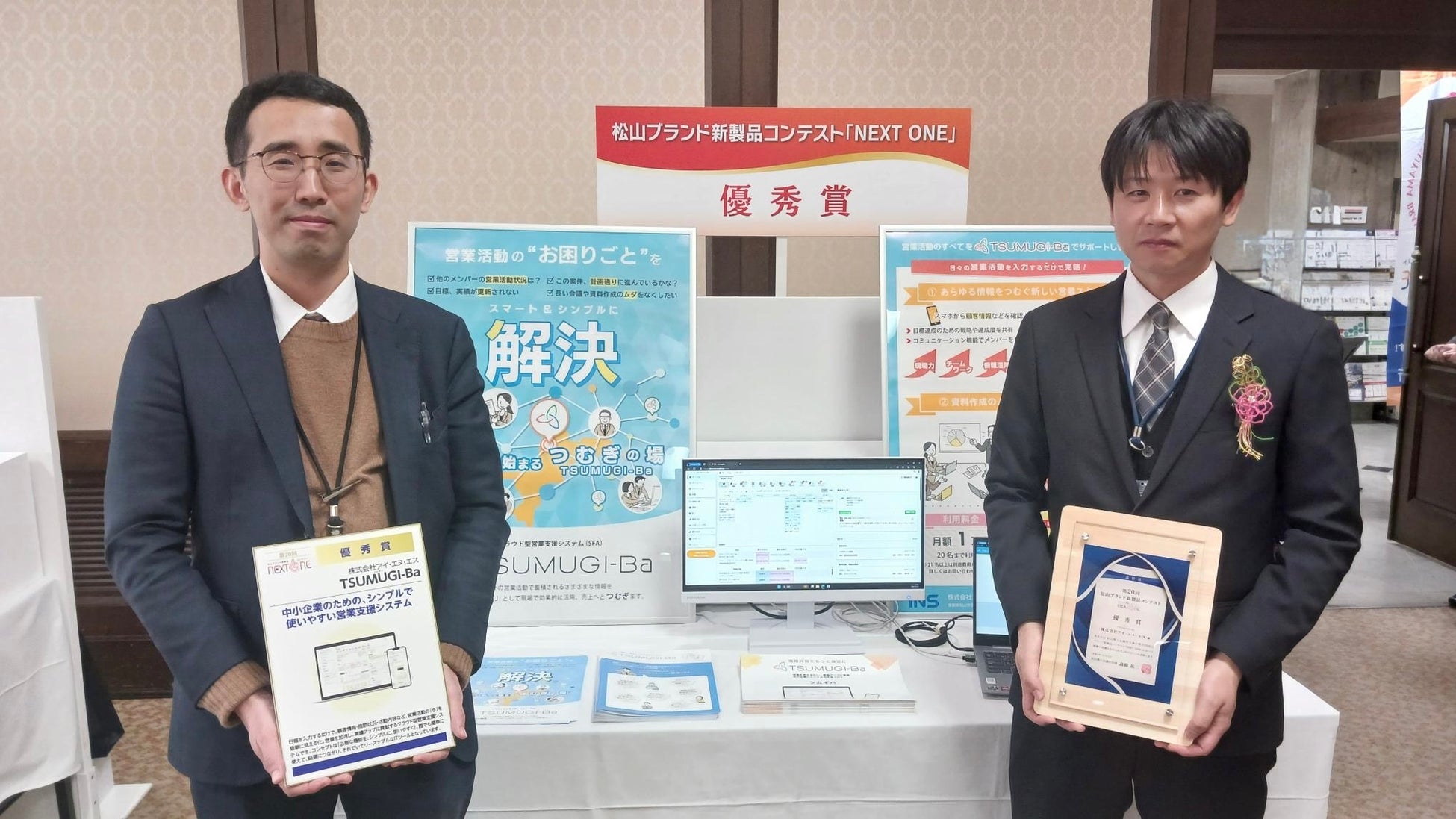 株式会社アイ・エヌ・エスが提供するクラウド型営業支援システム「TSUMUGI-Ba」が、松山地域の優れた製品を発掘する第20回松山ブランド新製品コンテスト「NEXT ONE」で優秀賞を受賞しました。