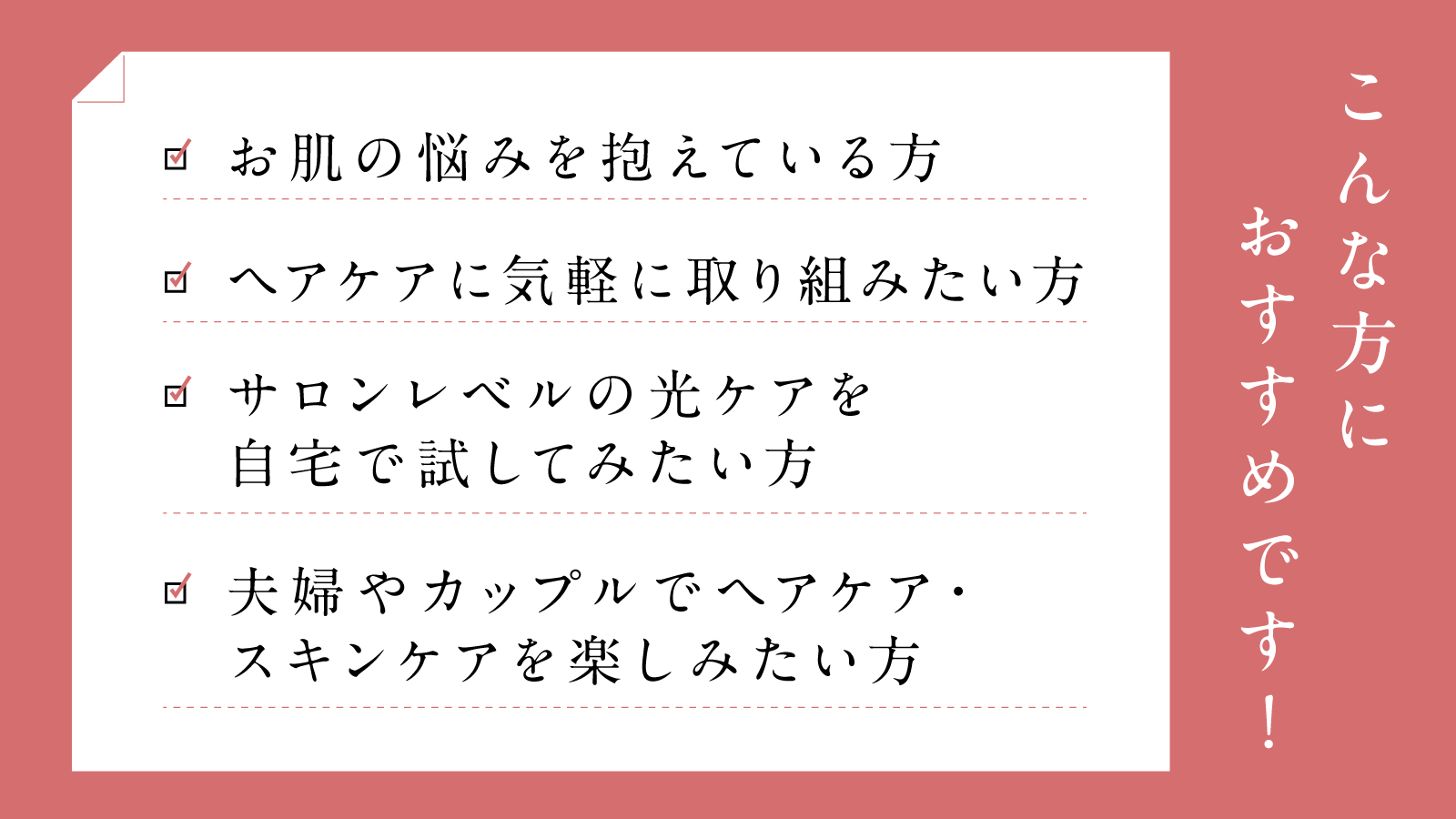 そんな方の思いに応え、自宅で使えるヘアケア・スキンケアデバイスを開発しました。