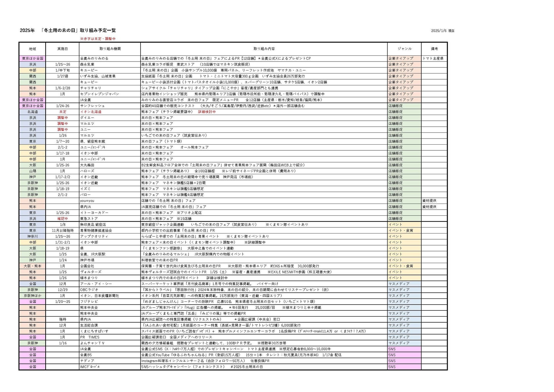 熊本県(銀座熊本館)、青果物健康推進協会、熊本県青果物消費拡大協議会、三井ショッピングパーク ららぽーと湘南平塚、大丸梅田店、VOLTERS、Charichari |
