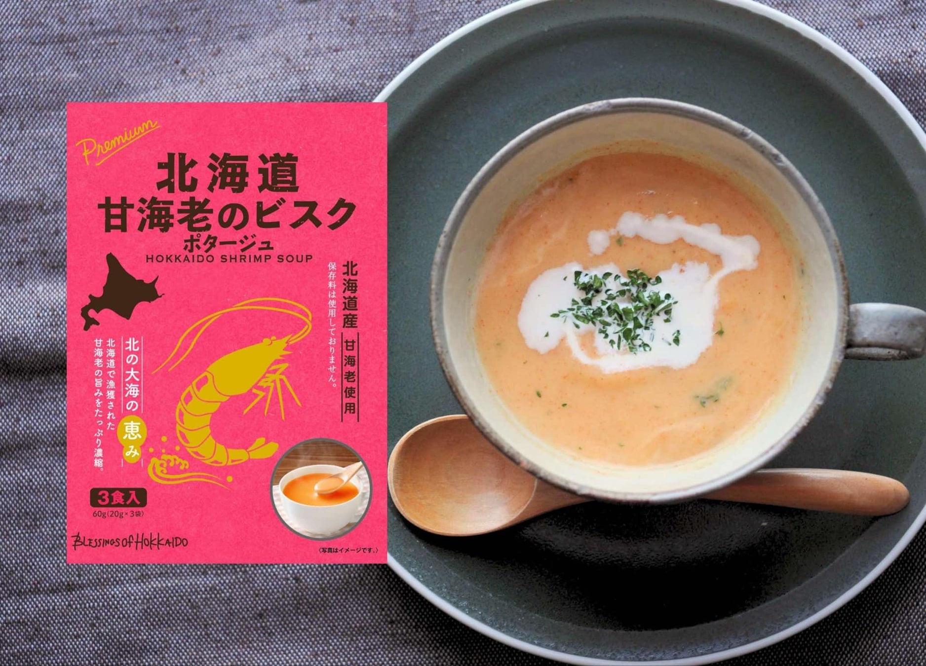 北海道産甘海老を頭から丸ごと贅沢に使用! 全国のパン好きにおくる、濃厚ビスクのポタージュ完成