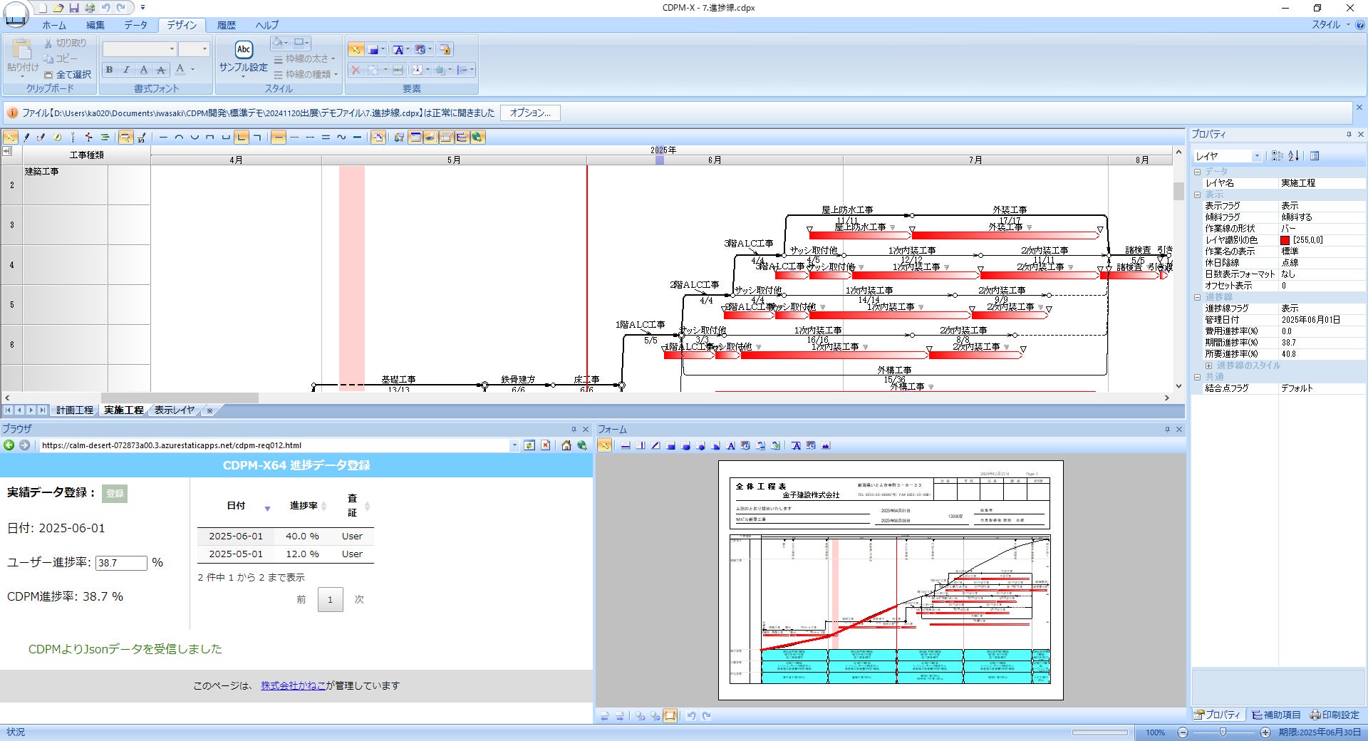 「CDPM-X64」は建設プロジェクトの工程管理を効率化するために設計されており、最新バージョンではEdgeブラウザとの連携がJson形式によって強化されています。この新たなアプローチにより、プロジェクト管理支援の可能性がさらに広がりました。