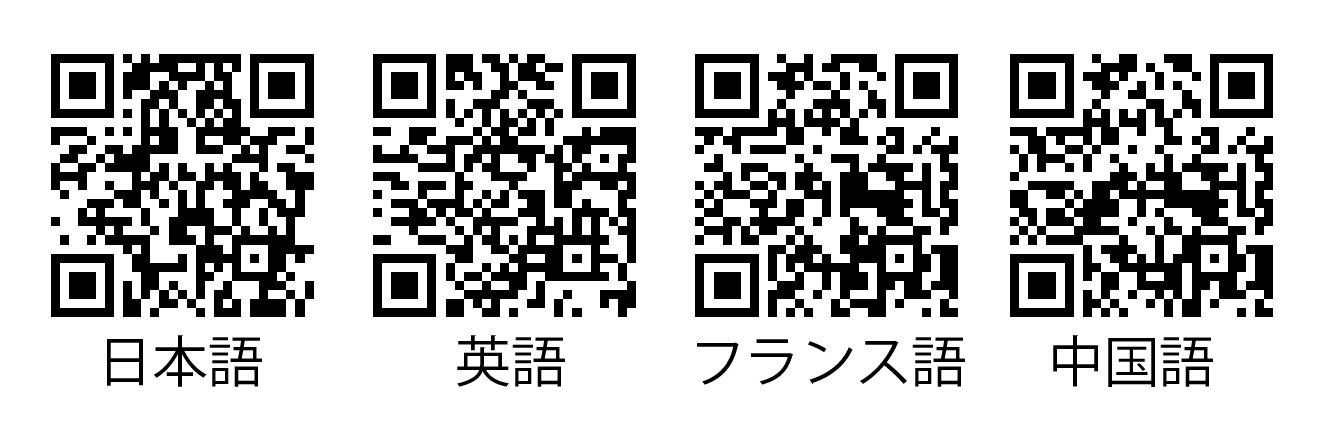 来場者は各自のスマートフォンで、作家の姿と声を介して(動画で)、創作の理念や、背景にあるストーリーなどに触れることができます。言語は、日本語、英語、中国語、フランス語などから選択が可能。(*必要に応じて、言語数は増やせます。) 日本語が母語でない来場者でも、各自の慣れ親しんだ言語で解説を聞くことができ、しかも映像と音声は作家本人なので、より効果的な臨場感が期待できます。