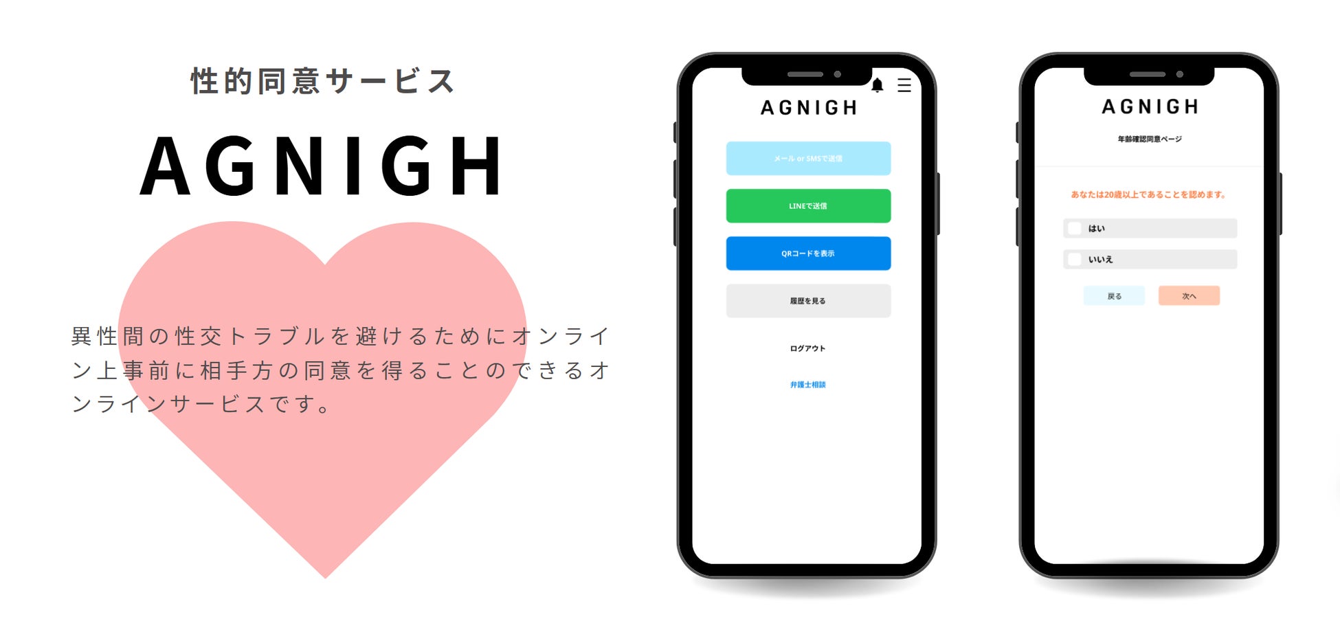 『不同意性交等罪』のリスクを防ぎ、信頼を壊さずに性的同意を記録する新サービス「AGNIGH」、提供開始