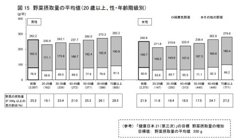 2024年に開始した厚生労働省「健康日本21(第三次)」において、野菜摂取量350g以上の目標量が設定されました。しかしながら、厚生労働省「国民健康・栄養調査」においても、長年にわたり350g以上の目標量に達することができず、日本人の野菜摂取量の不足が深刻となっています。