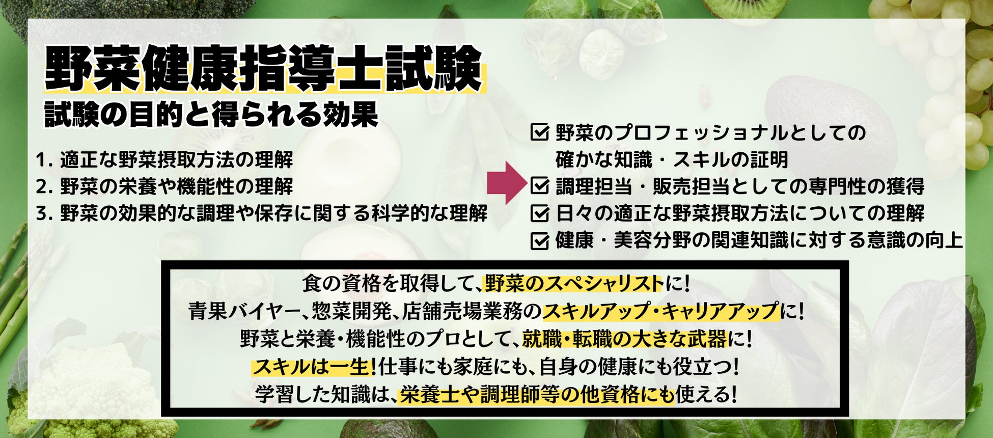 また、試験に先立ち、2025年5月18日(日)には「野菜健康指導士試験対策講座」をオンラインで開講し、野菜の機能性・栄養に関する学びができる資格事業を開始いたします。