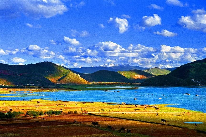 シャングリラでは、観光客は世界自然遺産「三江併流」の壮麗な景観を思う存分に味わい、梅里雪山の高さと神聖さを感じることができる。普達措国立公園、ナパ海湿地、虎跳峡などの景勝地は更に人々に帰るのを忘れさせ、観光客はハイキングして、原生態の自然の美しさを感じることができ、少数民族文化の中に深く入り込んで、、本場の民俗風情を体験することもできる。広々とした草原で馬に乗って疾走して、バター茶とハダカムギ酒の独特な風味を味わったり、焚き火のそばに座って情熱的な歌舞ショーを鑑賞したりするのは、すべて見逃すことができない忘れ難い体験である。