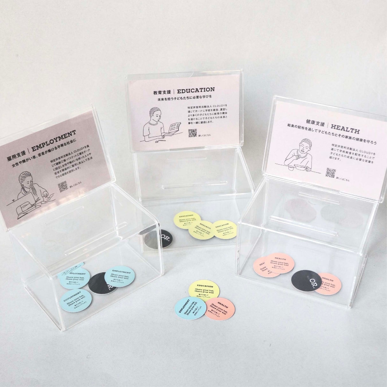 EDUCATION(教育支援)/EMPLOYMENT(雇用支援)/健康支援(HEALTH)の中からどの分野への寄付をご希望されるか投票をお願いいたします。