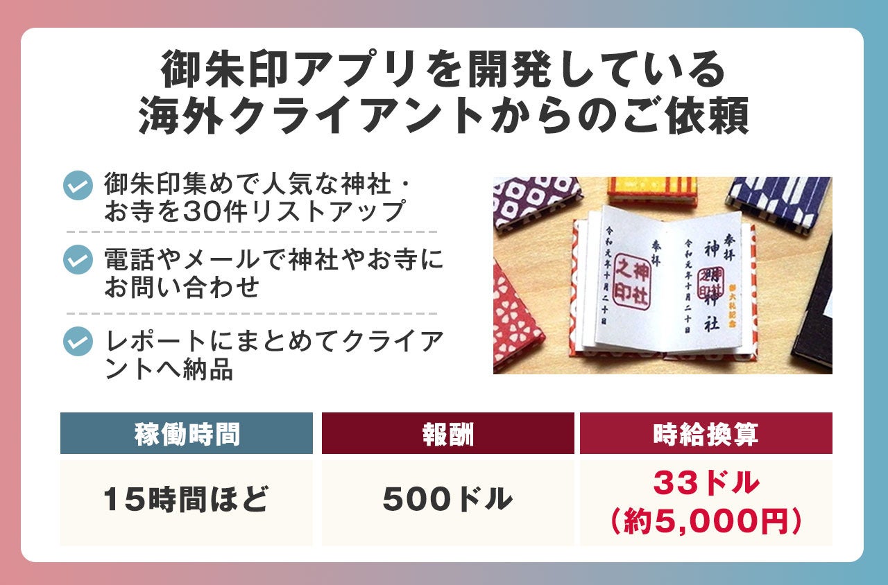 まず専門スキル不要という点ですが、逆に考えてみてください。専門スキルが必要なお仕事をわざわざ異国に私たち日本人にお願いすることはありません。私たち日本人にしかできないこと、言い換えると「日本人なら誰でもできること」を依頼されるケースがほとんどです。