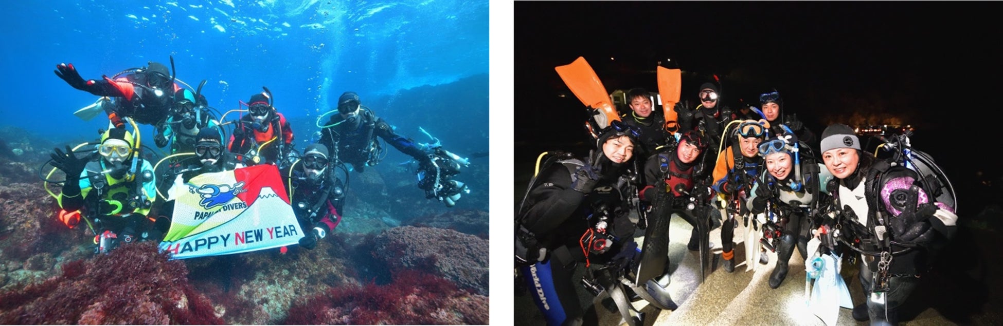 一年の締めくくりと新年の始まりを、伊豆大島の海で!パパラギダイビングスクールが贈る2泊3日の「年越しダイブ!水中カウントダウンツアー」開催