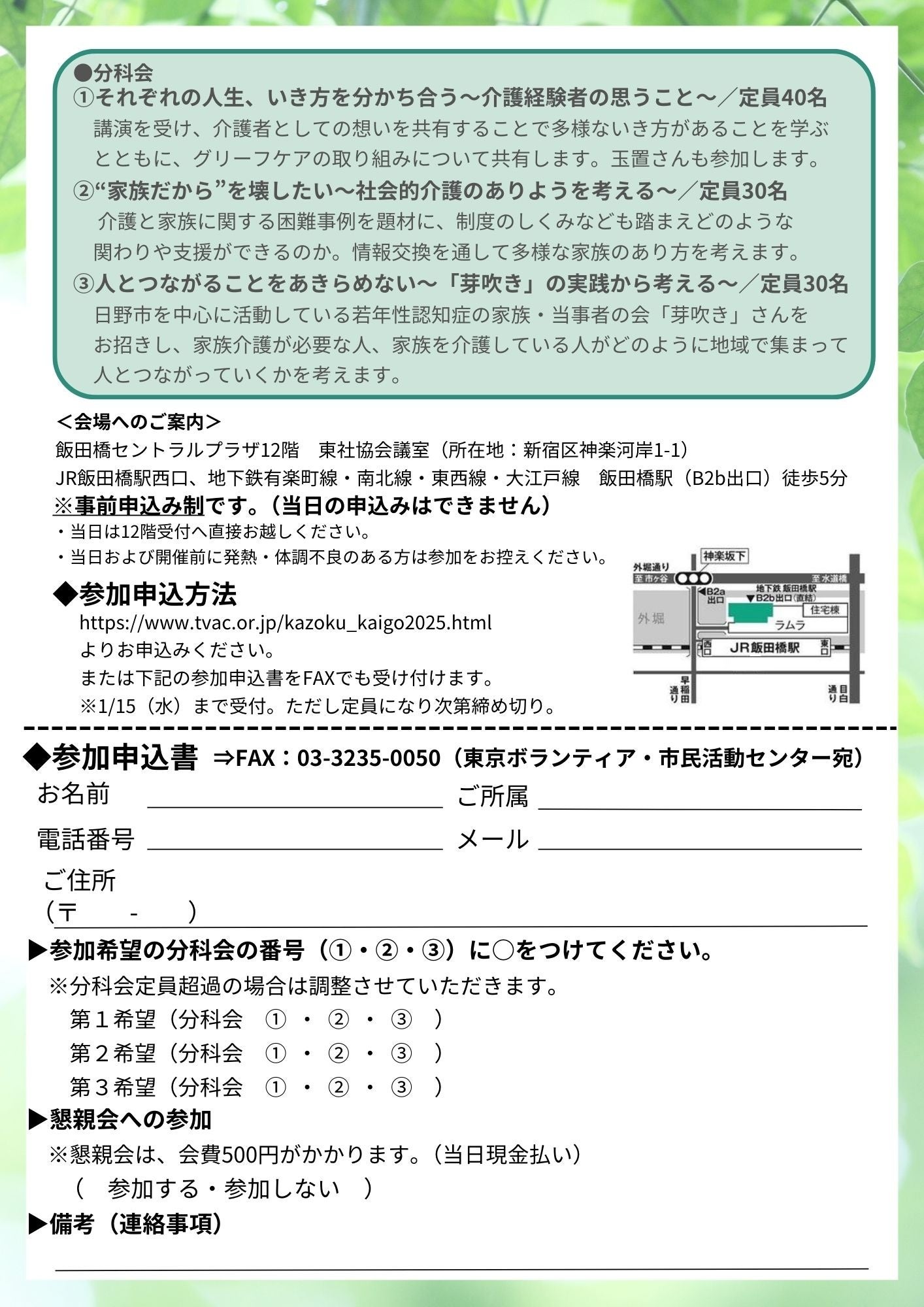■主 催 家族介護を考えるネットワーク(連絡先:東京ボランティア・市民活動センター)