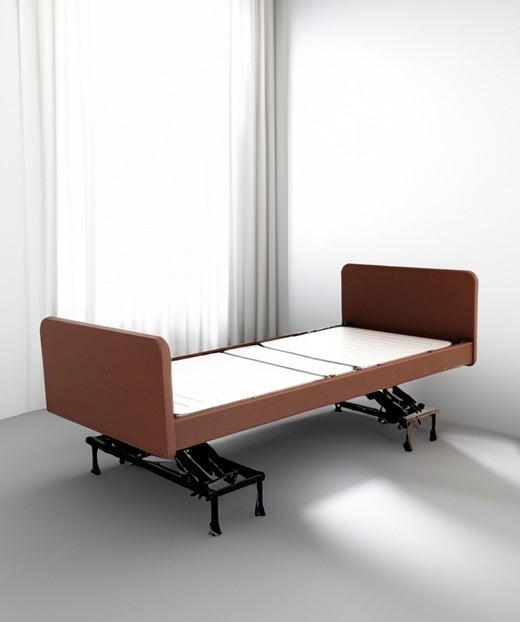 Smooth:4モーター/3アクションのベッドはベッド高の調整は水平に上下いたします。お部屋内の家具や壁と干渉することがありません。また、前脚・後脚の間に構造物が一切ないため、サイドテーブルや介護リフトの使用に役立ちます。
