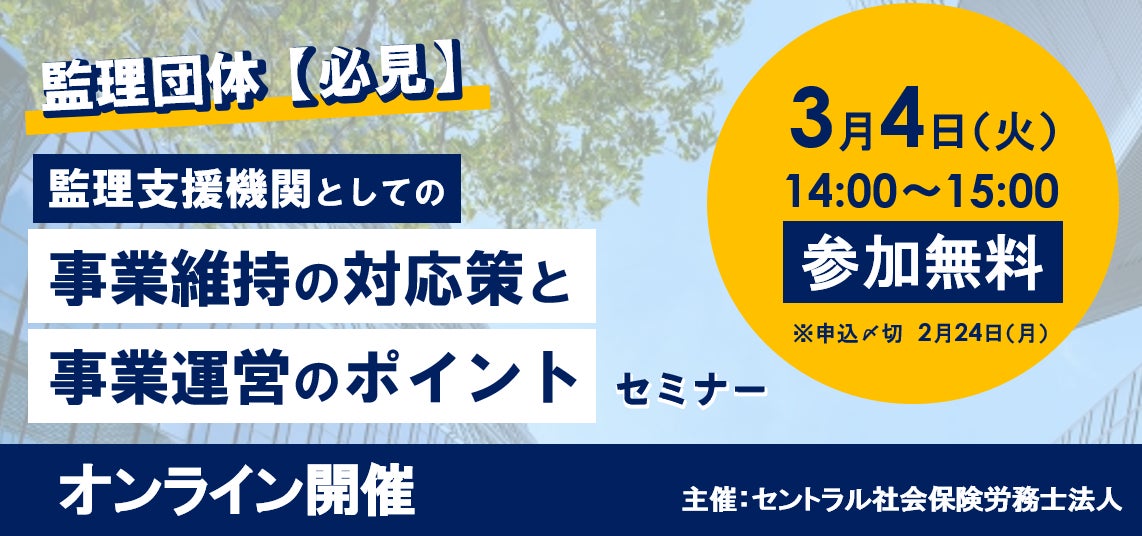 【オンライン/無料参加】「監理支援機関としての事業維持の対応策と事業運営のポイント」セミナー開催のお知らせ