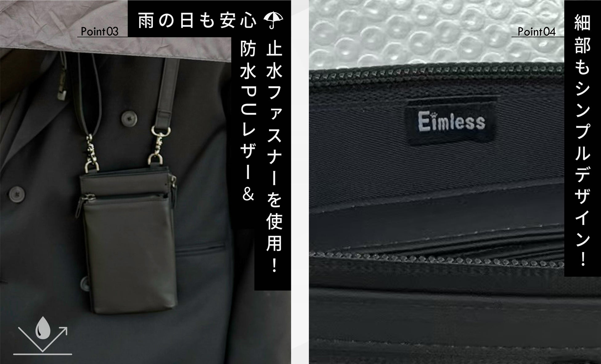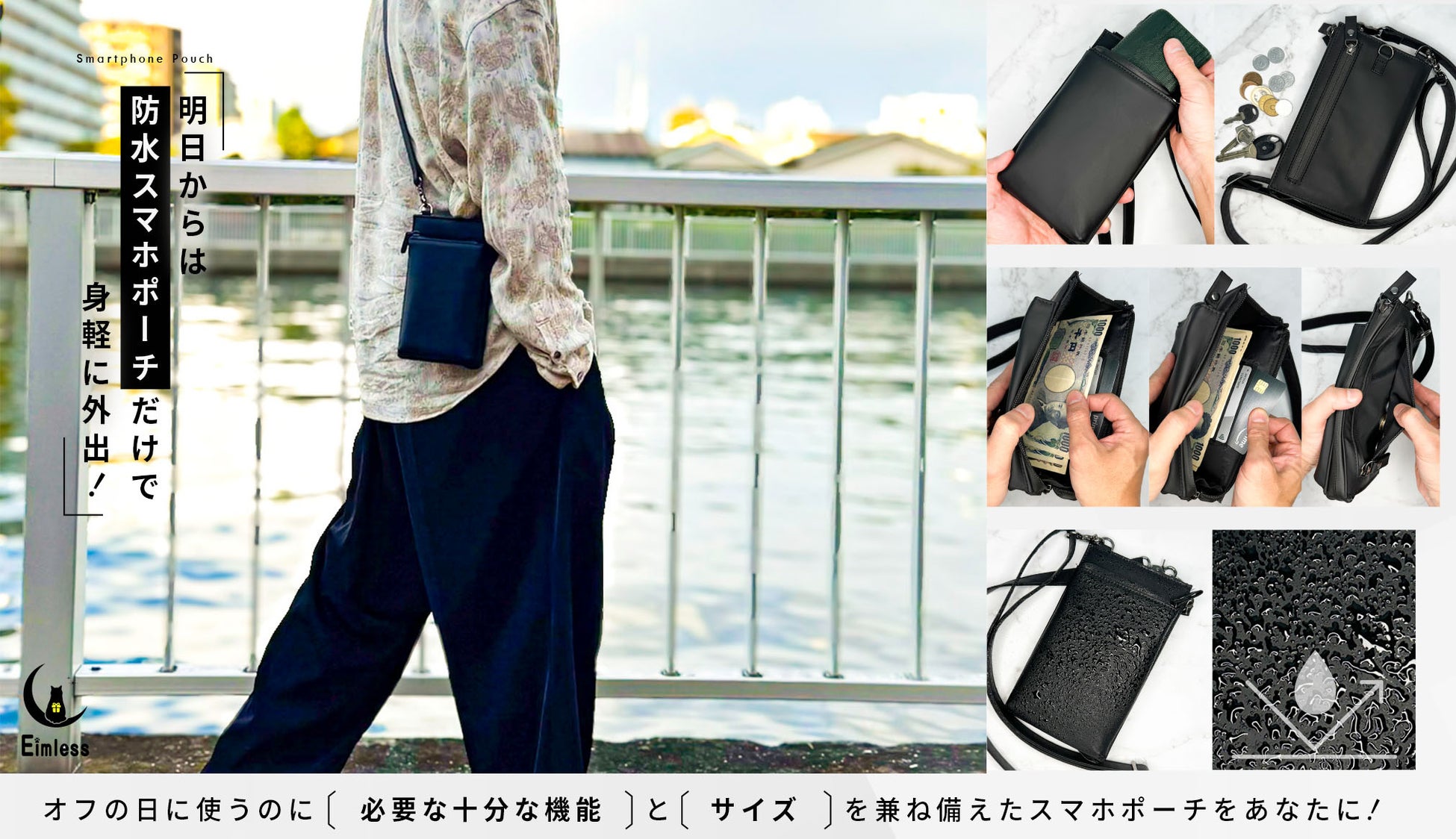 大人の男性がオフの日に使えるバッグを追求するブランドEimlessからオフの日に身軽に外出できる防水スマホポーチをAmazonにて2025年3月1日より販売開始します。