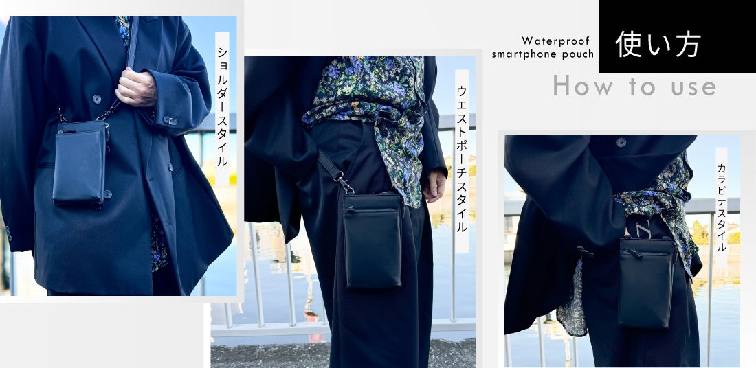 必要最低限の荷物の持ち運びにピッタリな3ポケット付き防水スマホポーチが登場!2025年3月1日より販売開始予定