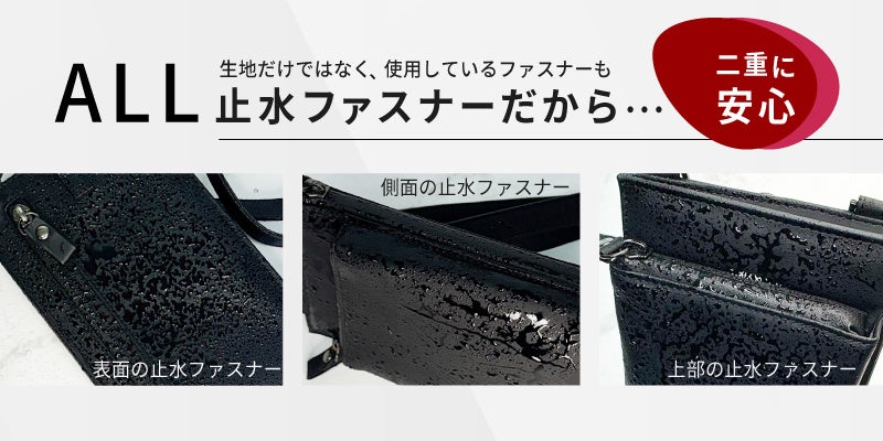 雨の日でも安心!防水PUレザー&止水ファスナーを使用!