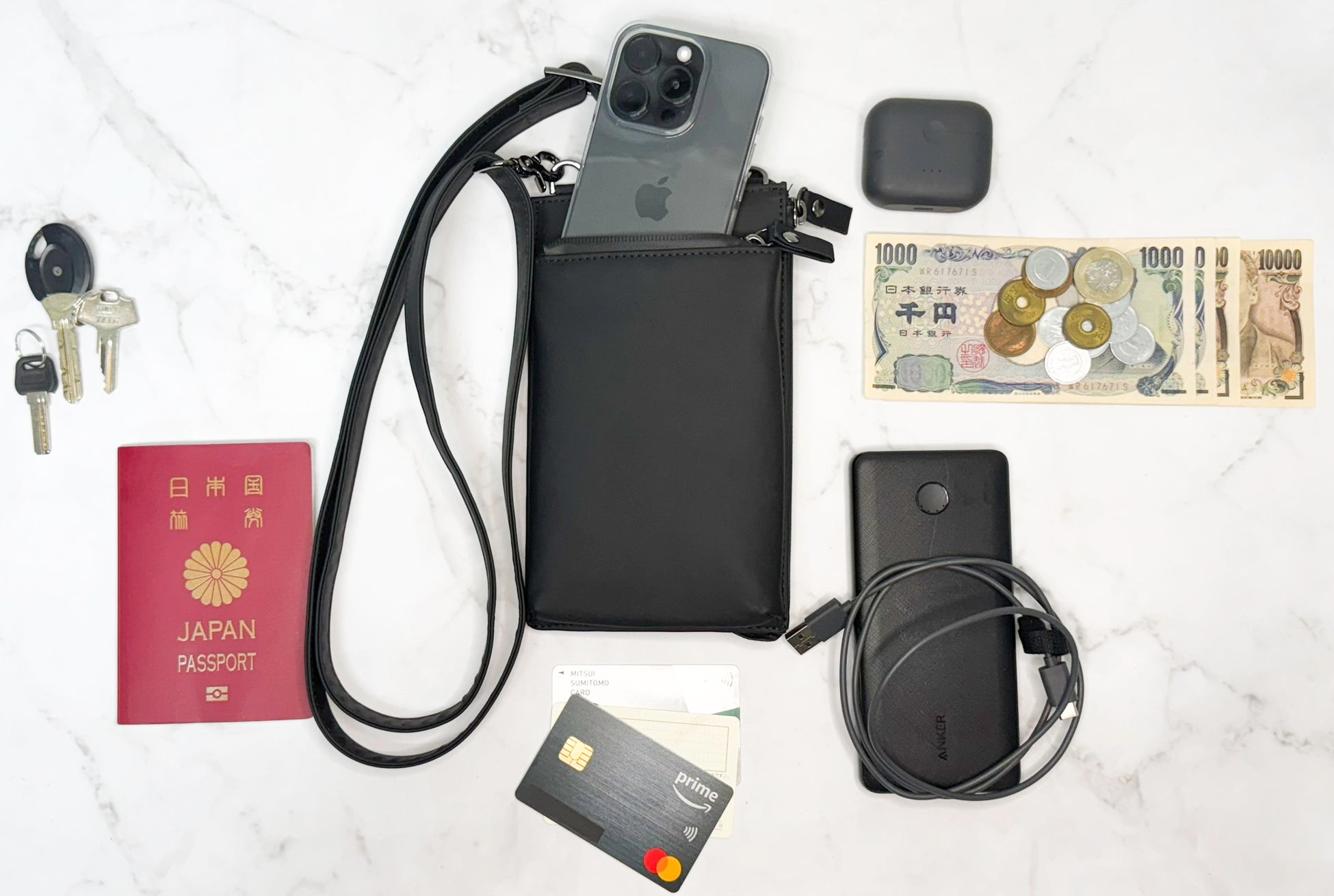 オフの日に必要な荷物は、男性であればスマホ、現金、クレカ、免許証、家や車の鍵と案外少ない!