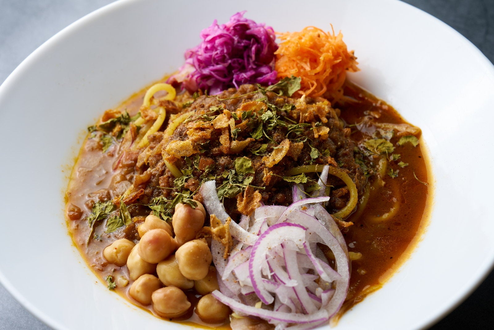 ミートソースとスパイスカレーを融合させた、新感覚のスープパスタです。『自家製ミートソースpotto』の濃厚な自家製ミートソースと、『北摂スパイス研究所』が厳選した本格スパイスとが絶妙に調合。