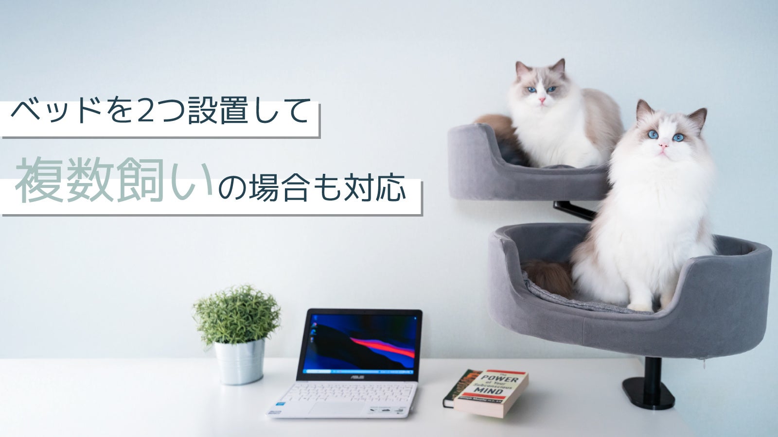 愛猫を複数飼っている場合でも、シングルキャットタワーとダブルキャットタワーの合わせ買いで44cmのダブルキャットタワーの支柱に2つのベッドを装着可能で、飼い主が仕事中に複数の愛猫と共に過ごすことが可能です。