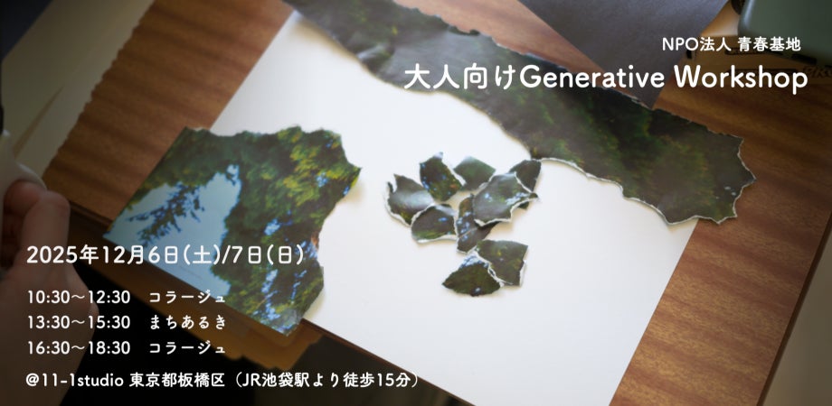 東京都の公⽴⾼校を中⼼に、⾝体性や⾮⾔語アプローチを取り⼊れた新しい探究プログラムを展開するNPO法 ⼈⻘春基地(所在地:東京都豊島区、代表者:佐野真知⼦、URL:https://seishun.co/、以下「⻘春基地」) は、2025年12⽉6⽇(⼟)・7⽇(⽇)、池袋駅徒歩15分の11-1 studioにて、⼤⼈が⾃分の感性と向き合う体験型 ワークショップ「Generative Workshop」を開催いたします。