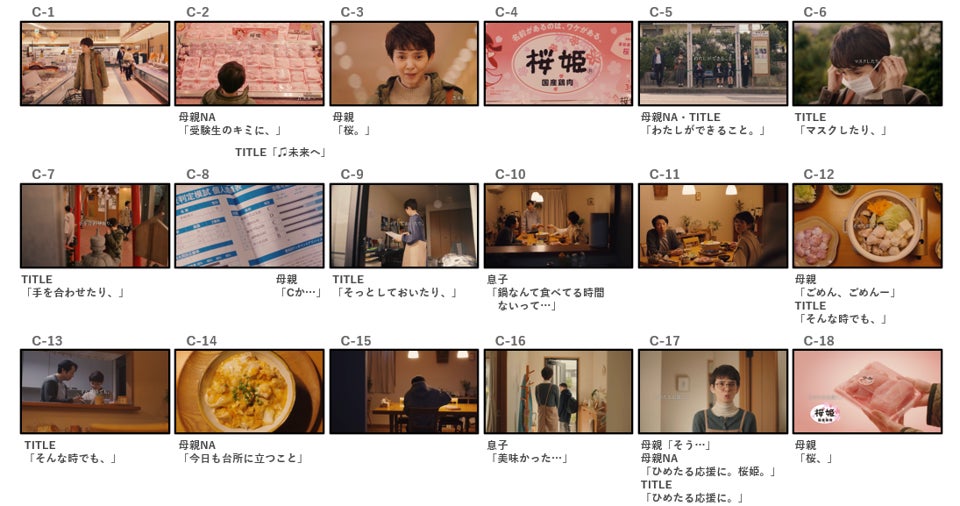 動画では「風邪を持ち込まないようにマスクをする」や「飲み会は春まで我慢」、「送迎の時は、音楽の音量を事前に小さくしておく」、「寒いから夕食は体が温まる鍋にする」など、受験生の子どもをさまざまな「ひめたる応援」で支える親の姿や、時に思いやりが通じず、すれ違いながらも、子どもをサポートし続ける親の愛情を丁寧に描いています。