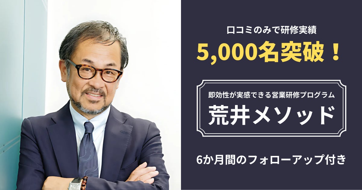 <口コミのみで研修実績5,000名突破!>即効性が実感できる営業研修プログラム「荒井メソッド」ついに初公開