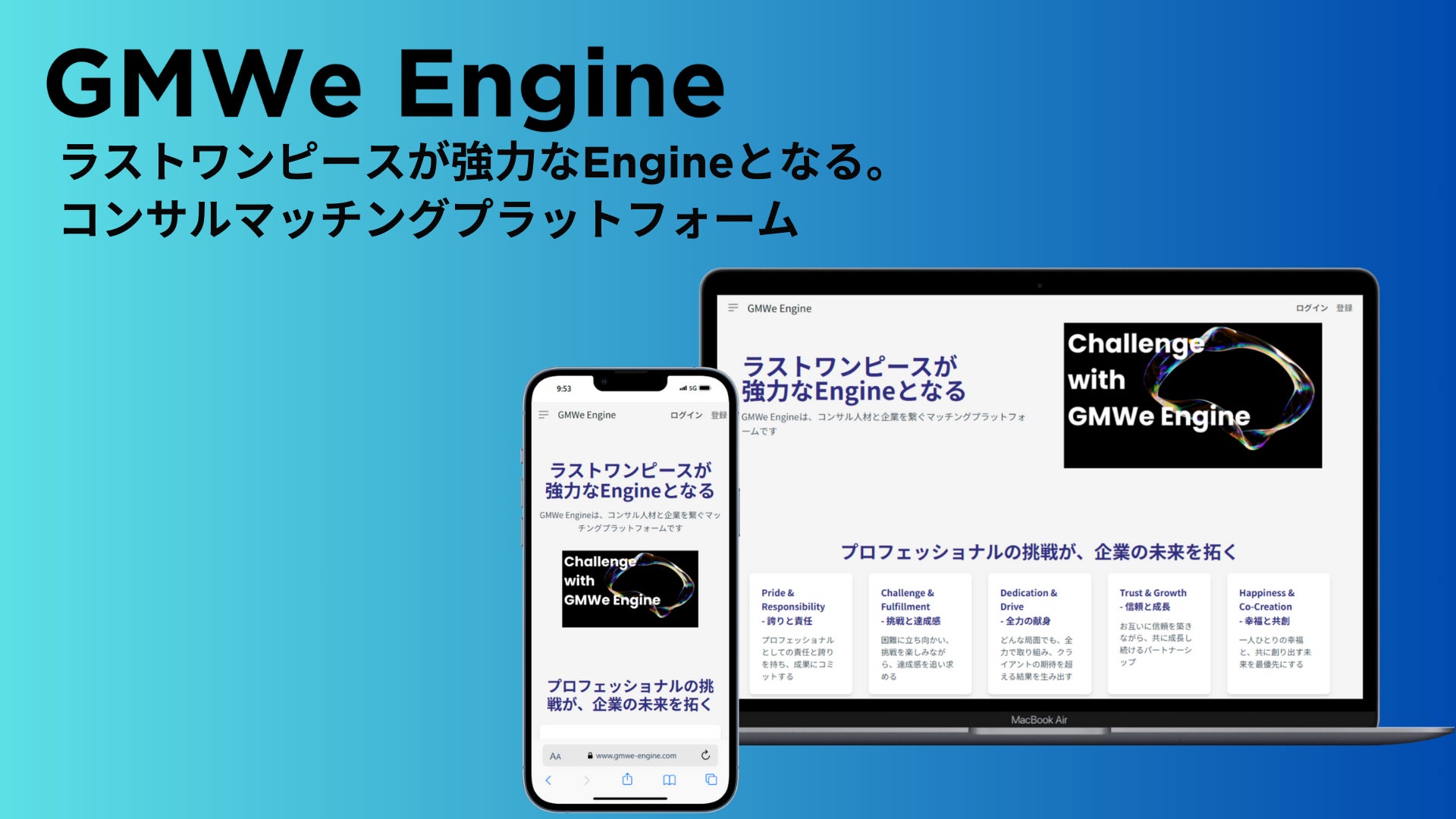 ラストワンピースが強力なEngineとなる。「GMWe Engine」は、課題解決ニーズのある企業とコンサルタントをマッチングすることで企業の課題解決をサポートし、持続可能な成長を実現します。