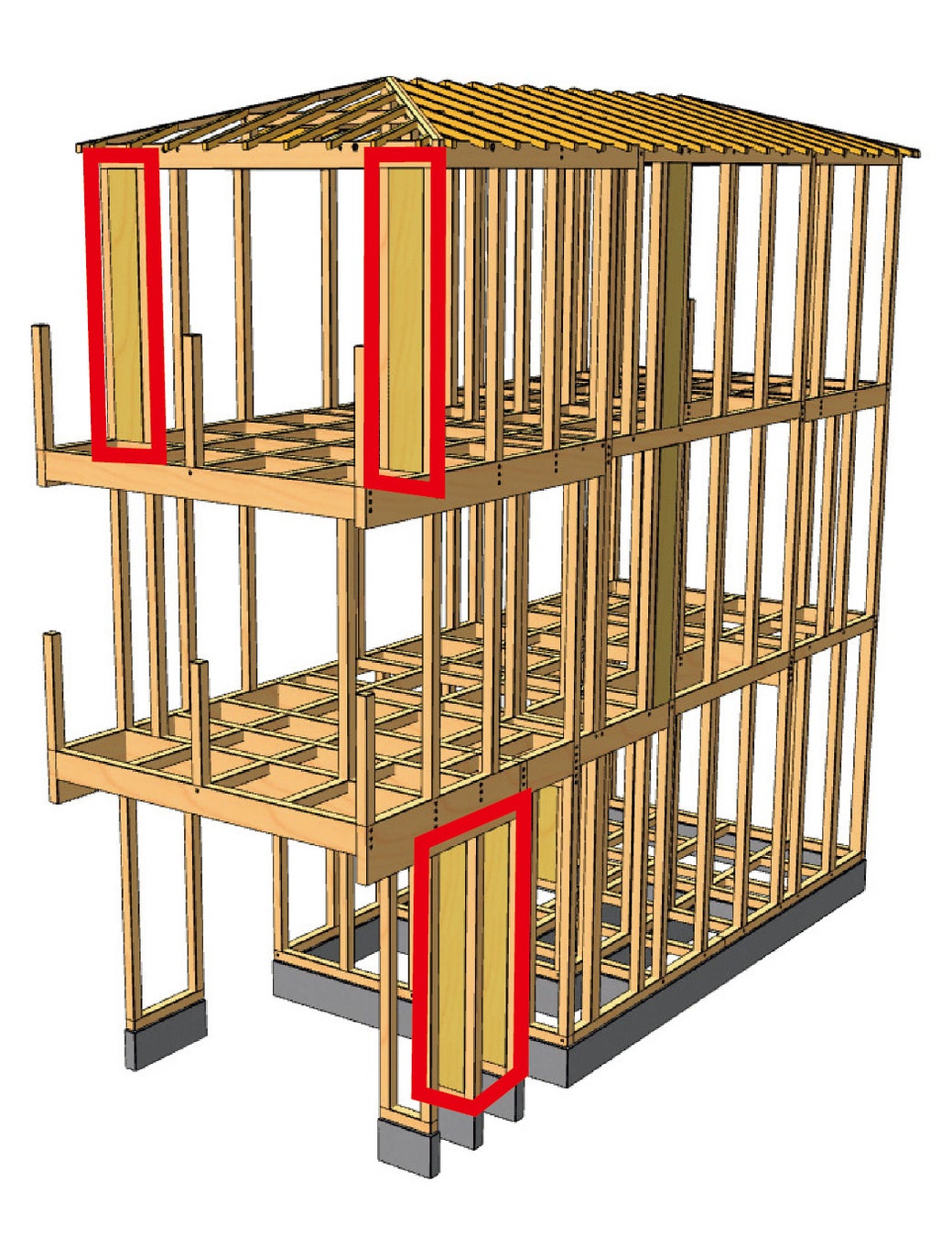 これまで、幅の狭い耐力壁は構造計算上カウントできないという課題がありました。しかし、今回の評定取得により、ビルトインガレージや大開口の窓周りの袖壁など、幅が限られる箇所にも耐力壁として組み込み、構造計算に反映することが可能となりました。