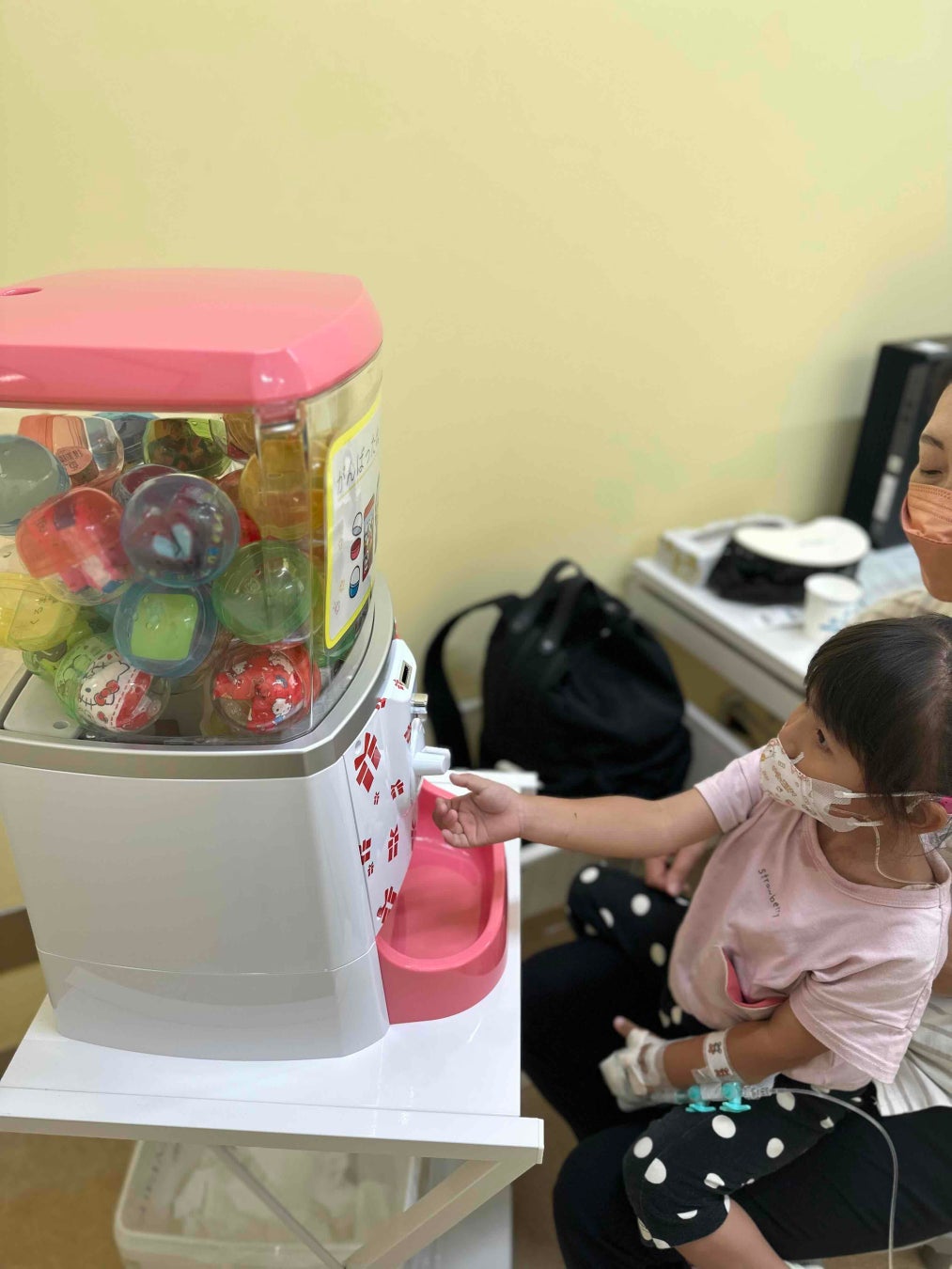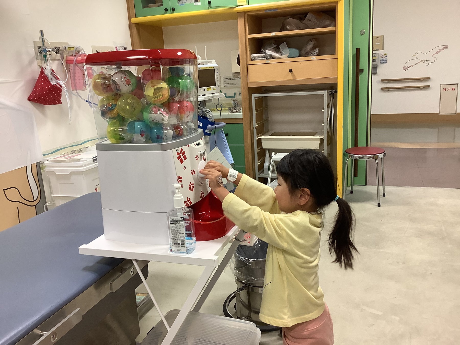 現在11病院に設置・運用していますが、「ガチャガチャがひけるよ!」と声掛けをすると、治療を頑張るぞ!と子ども達の表情がぐっと変わる効果があるというお声を医療現場より頂いています。