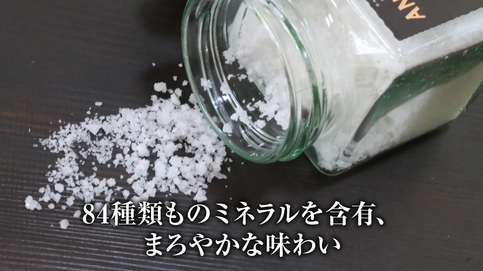 伝統的な天日乾燥による製法を採用しているため、ミネラルの損失がほとんどなく、塩本来の旨みがぎゅっと詰まっています。そのまろやかな口当たりと深い味わい、軽やかな後味は、どんな料理にも絶妙に寄り添います。