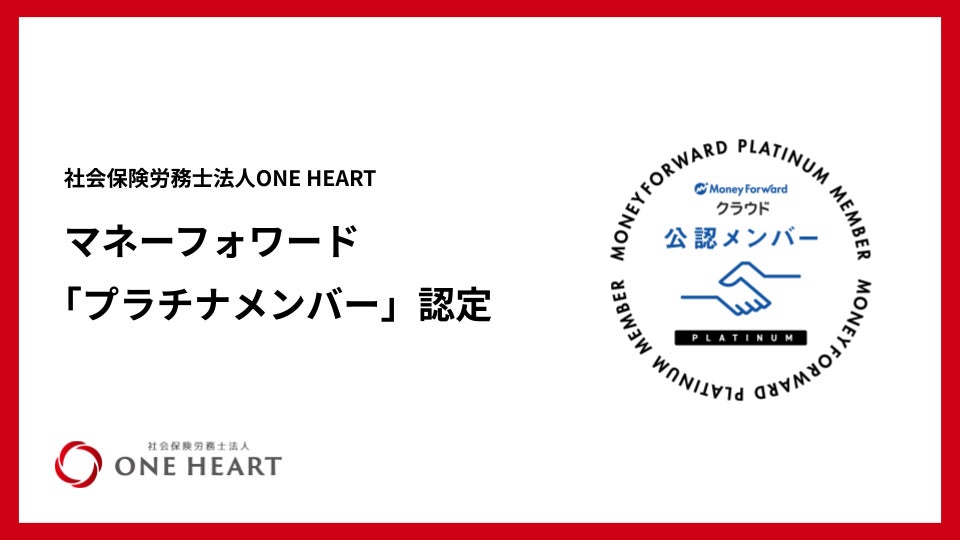 社会保険労務士法人ONE HEART(本社:東京都、代表:吉田優一)は、この度、マネーフォワード社の「マネーフォワード クラウド公認メンバー制度」において、最上位となる「プラチナメンバー」に認定されました。