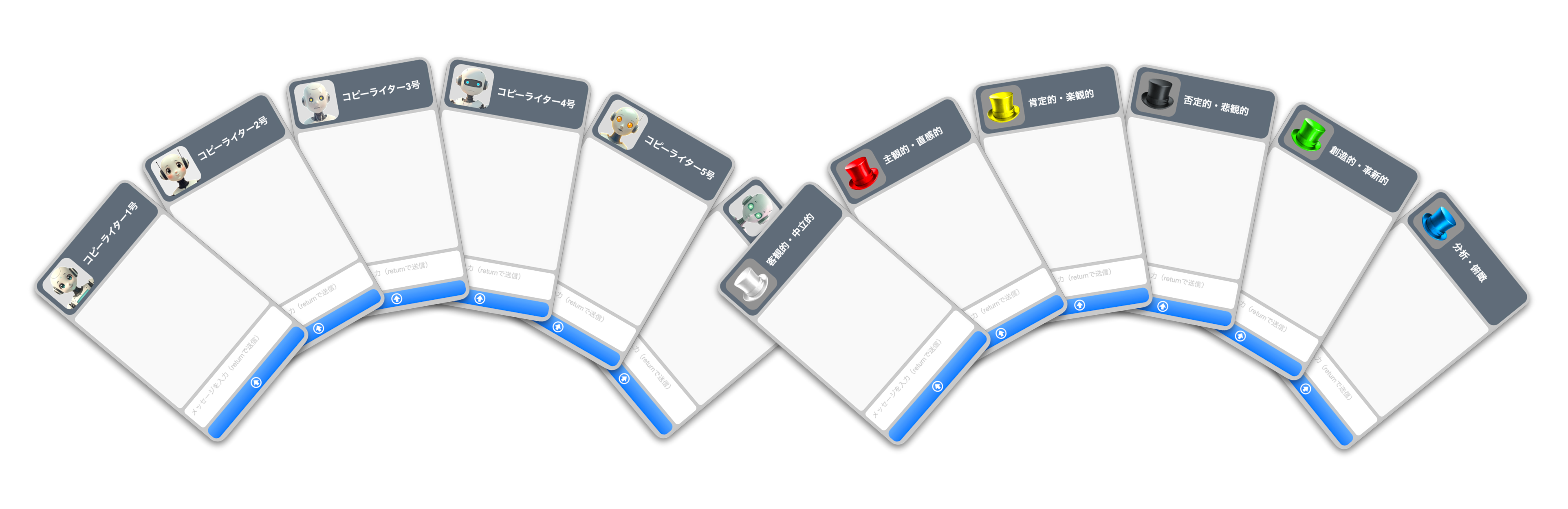 『悪魔の代弁者』は英米のディベートではおなじみの役割で、すべての意見を批判します。また『ディープダイバー』はどこまでも「なぜ?なぜ?」と深掘りします。こうしたカードをAI会議に参加させると、AIどうしの議論が深まります。