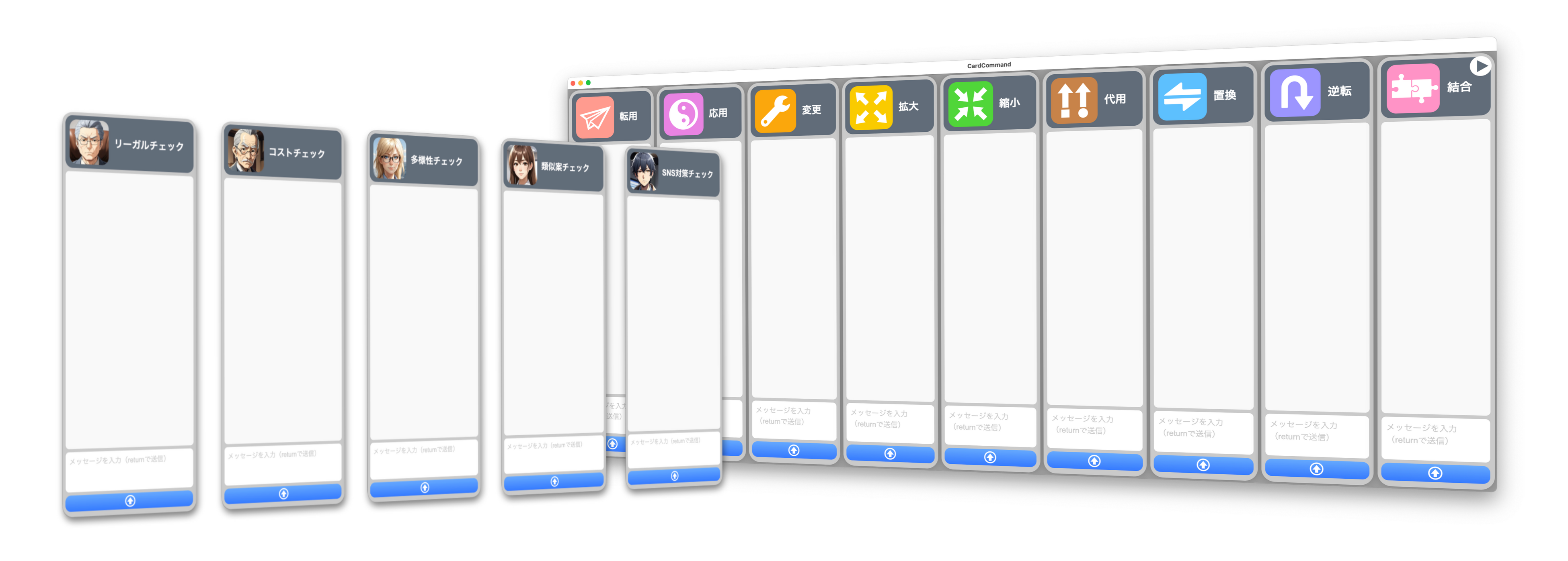 『カードコマンド』は、『人と人』『人とAI』だけだった関係に『AIとAIと人』を追加し、これまでの単独チャットAIを超えた生産性と創造性を実現しました。